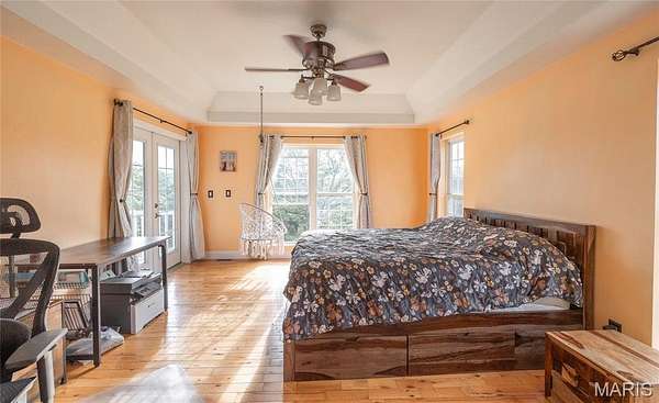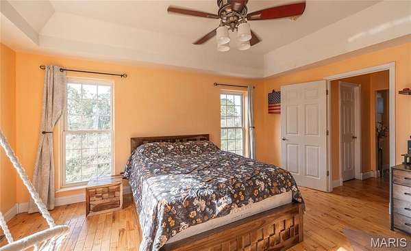 This stunning 4-bed, 4.5-bath home is perfectly situated on nearly 4 acres, offering the perfect blend of privacy, space & comfort. From the moment you step inside, you're greeted by a warm & inviting living room with hardwood flooring, a beautiful stone electric fireplace & large windows that fill the home with natural light. The kitchen is designed with both style & functionality in mind, featuring solid surface countertops, stainless steel appliances & a generous pantry. The main-floor master suite is a true retreat, complete with his-and-her walk-in closets, private access to the back deck & a luxurious bathroom with a jetted tub, walk-in shower & double vanity. Also on the main level, you'll find a half bath & a versatile office space that's ideal for working from home. Upstairs, a spacious loft area doubles as a bedroom with its own full bathroom, making it a perfect space for guests. The finished lower level is made for entertaining & relaxing, offering a large family room with a bar, 2 guest bedrooms & 2 additional full bathrooms. Step outside & enjoy everything this property has to offer. A covered back deck and patio provide the perfect spots for outdoor dining. The above-ground pool is ready for summer fun, while the pond adds a peaceful touch to the grounds. Additional features like the John Deere room make storage & maintenance easy. Don't miss the chance to make it yours--schedule your showing today & experience everything this beautiful property has to offer!
