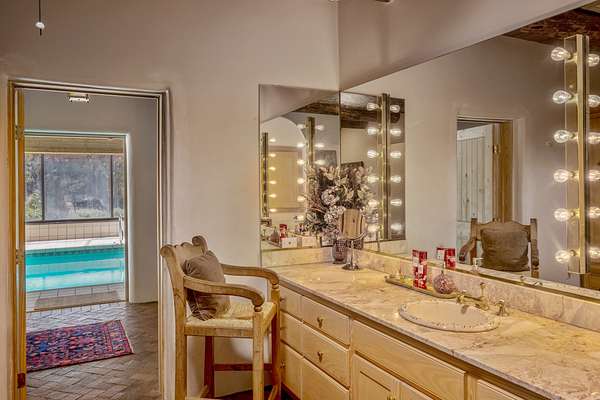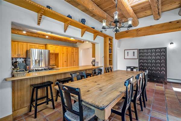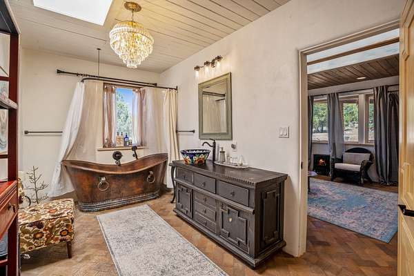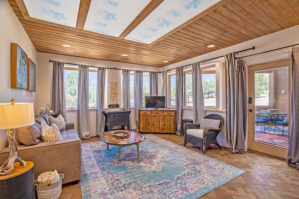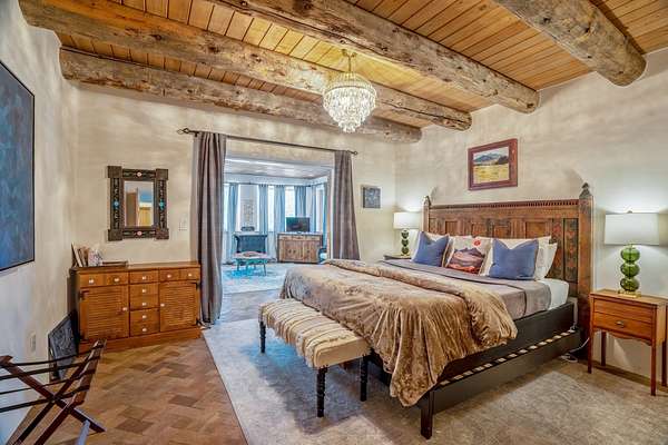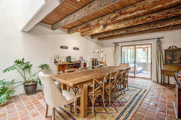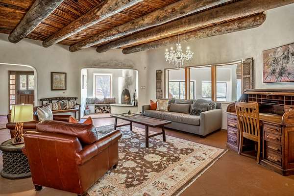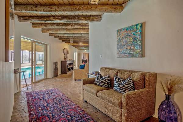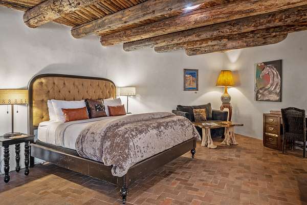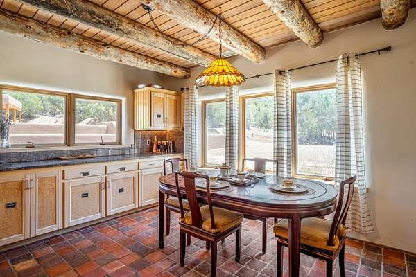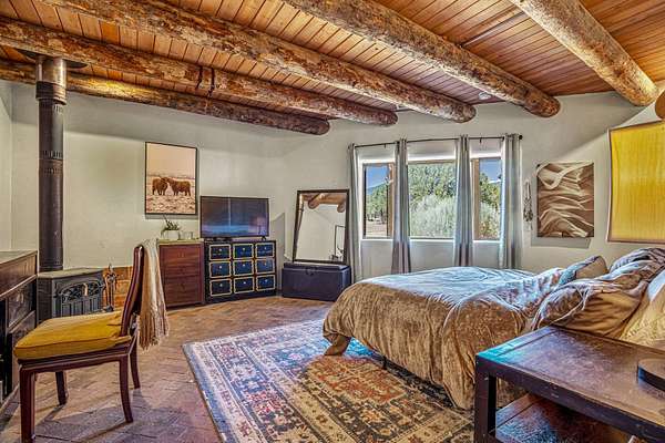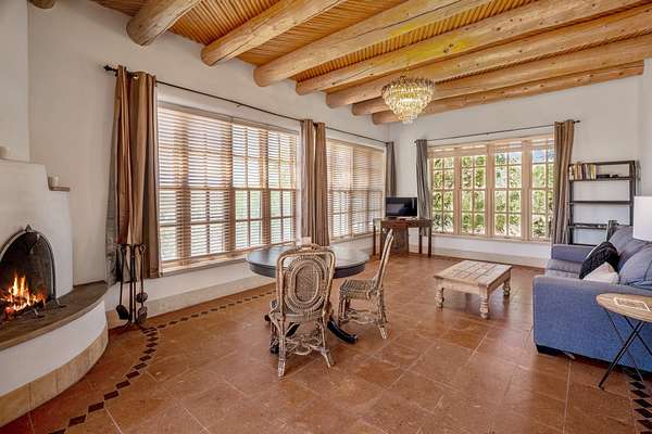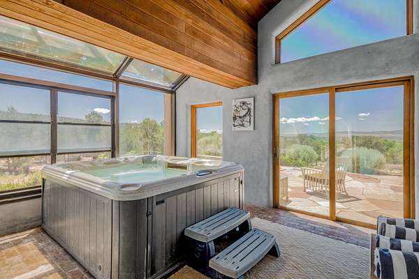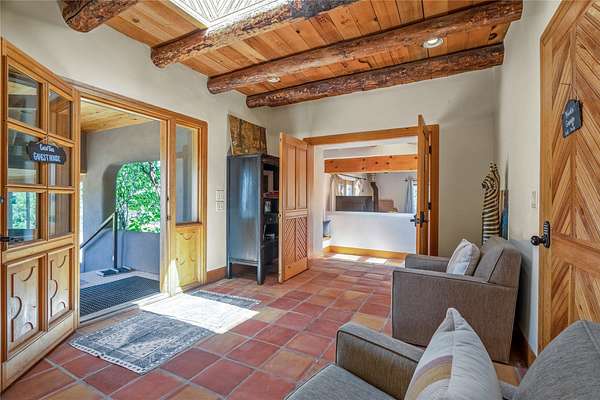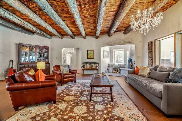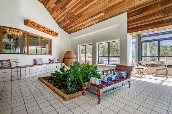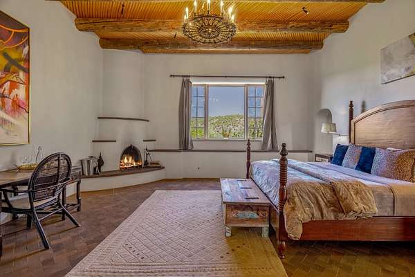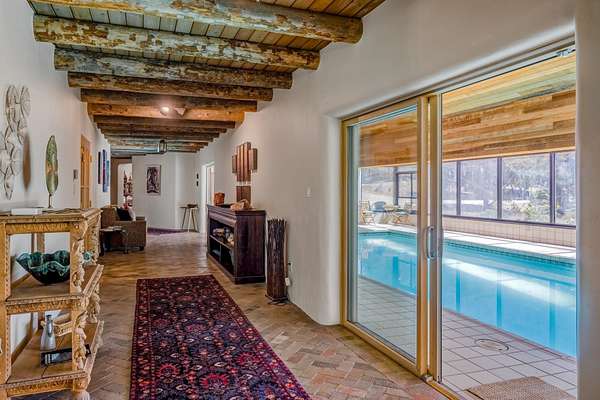 Substantial price improvement! Real Estate opportunities such as this present themselves once in a lifetime. This listing offers prospective buyers a chance to own a genuine Northern New Mexico manor. After entering the grounds, guests are welcomed by stunning views and subdued luxury, hidden in classic Northern New Mexican fashion. The foyer invites owners and guests into a grand central parlor with options in every direction. The indoor pool and hot tub can be seen at a glance to the left; commercial-grade kitchen with breakfast nook to the right, and suites, (an office for the property manager), dining rooms and the main hallway directly ahead. A covered outdoor breezeway draws visitors to over two-thousand square feet of guest house and plenty of room for parking of vehicles and classic cars in the many garage entrances. With the exception of stunning artistry on the walls and sacred Native American artifacts located throughout the home (and grounds) the furniture will convey with the listing. Listing agency has taken the liberty of providing photos and video footage that just manage to capture the scope, breadth and majesty this property exudes from every corner of its combined edifices (over 10,000 sf). The estate currently honors guests of the owners by appointment, as well as wedding parties and those fortunate enough to secure a room in this purposely hidden gem.