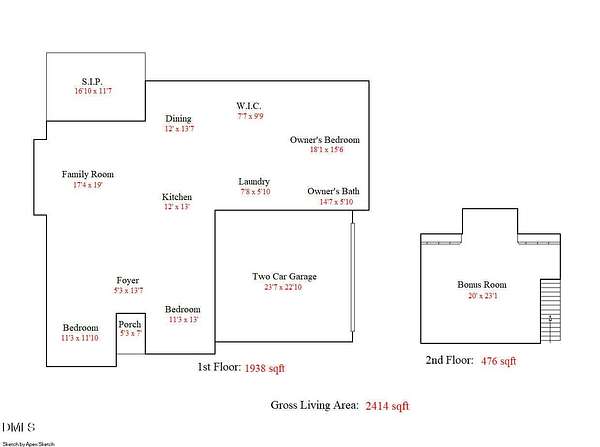 - Bathroom x 3, Bedroom x 3, Bonus Room, Dining Room, Family Room, Laundry Room