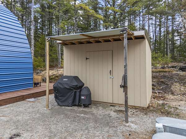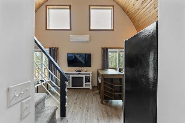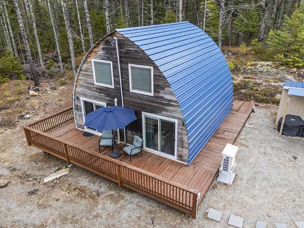 Sustainable. Modern. Turnkey. Experience this high-performance, all-electric year-round retreat on Westport Island, Maine. Architecturally distinct for its unique round design, this 2-bedroom, 1-bathroom home is ideal for energy efficiency and low-maintenance ownership. This camp or vacation home features an open-concept main level with a private bedroom and a versatile, light-filled second-story loft. Easy to maintain with high-end heat pumps and two infrared fireplaces. No oil or propane, no hassle. Recent upgrades include new high-end wood laminate and carpet flooring, new kitchen cabinets, and quartz countertops to complement the energy-efficient appliances. Enjoy the quiet evenings outside by the fire or relax inside with all the natural light pouring in. The seller is conveying most furniture and a generator, which could make it an immediate-start short-term rental. Located near Boothbay, Maine, and Wiscasset, Maine, you and your guests will love the proximity to Casco Bay. The property is conveniently located near the Westport Island boat launch and Clough land preserve.