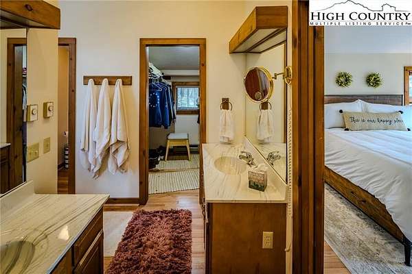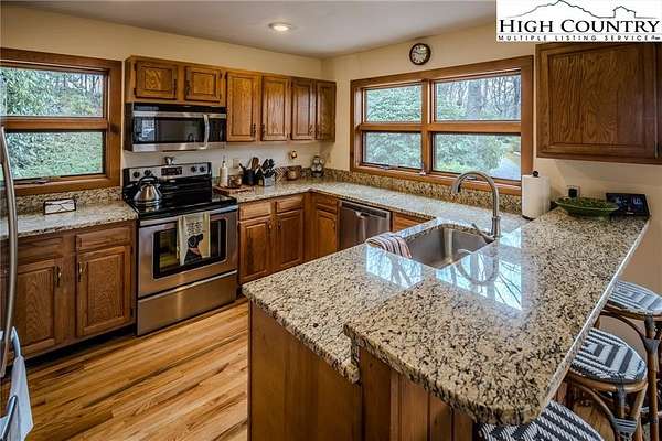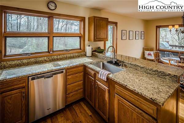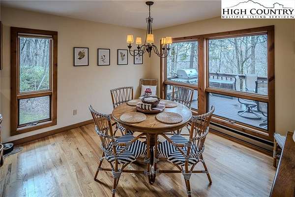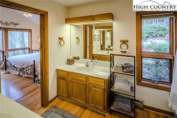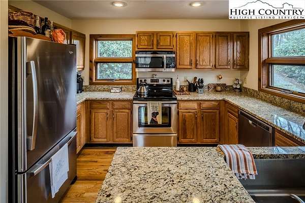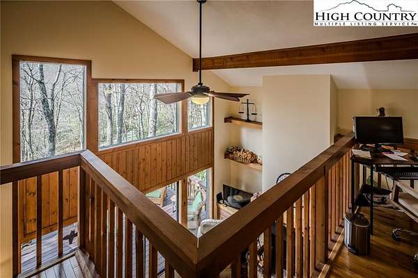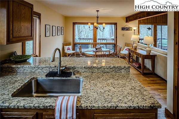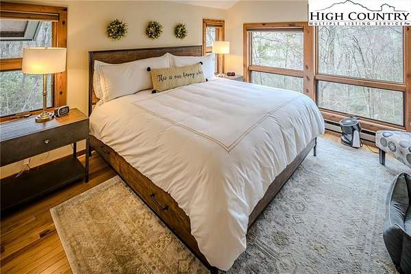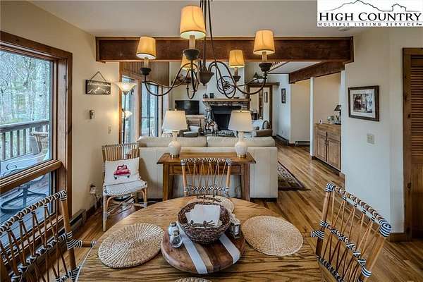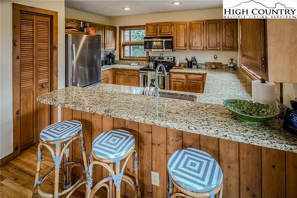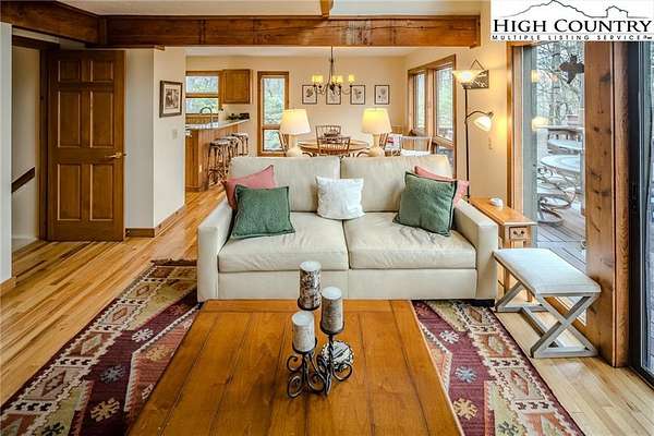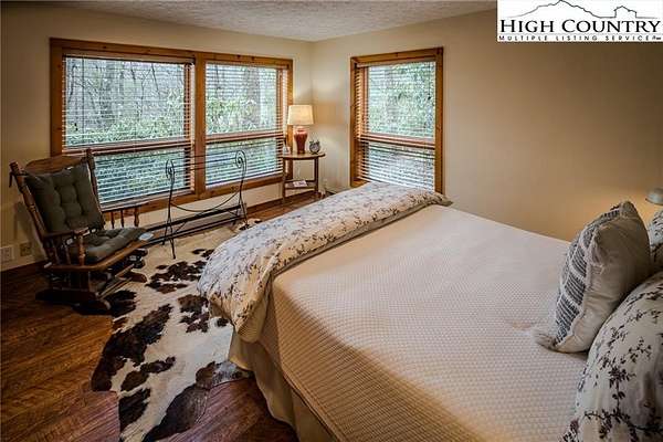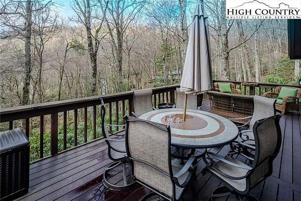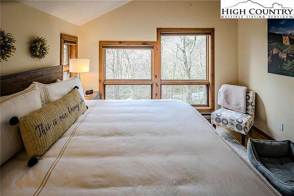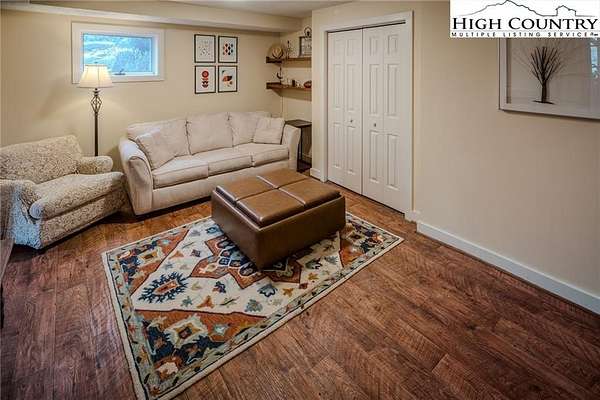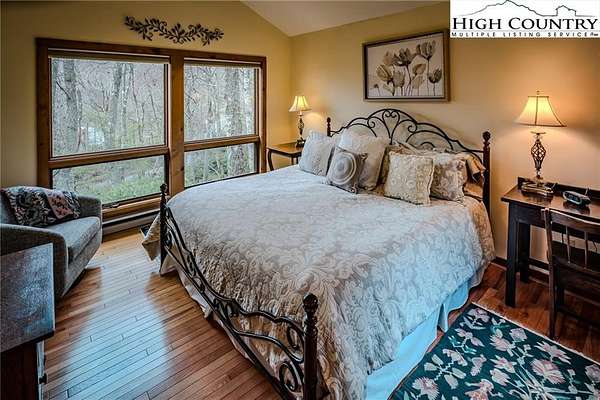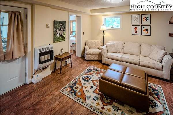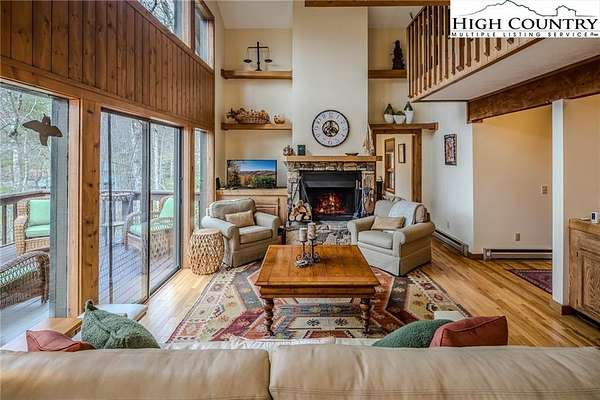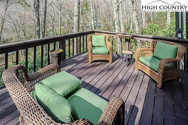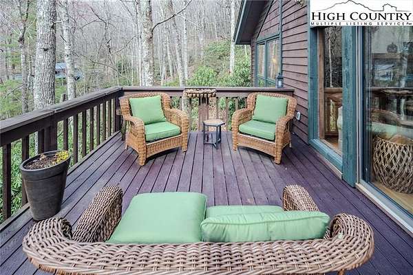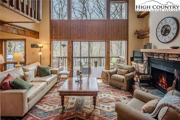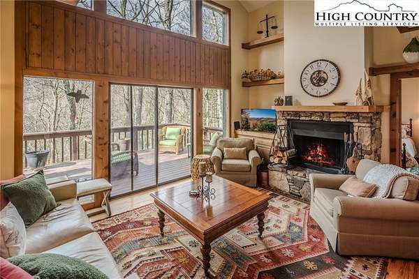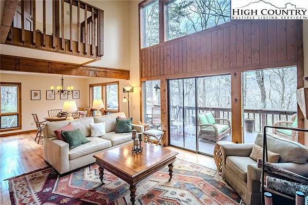 Welcome to your dream mountain escape in the heart of Linville! Tucked away in a serene, woodsy setting, this charming cottage blends rustic charm with modern comfort. Nestled on 2.5 acres and surrounded by nature, the home offers a peaceful, private retreat just minutes from Tynecastle shopping & dining, Sugar Mountain Ski Resort, Grandfather Mountain, and the scenic Blue Ridge Parkway. Step inside to a warm, inviting interior featuring vaulted ceilings, a stone wood-burning fireplace, and walls of windows that bring the outdoors in. The open-concept great room flows into a spacious dining area and a large kitchen with granite countertops, perfect for entertaining. With bedroom suites on both the main and second floor, plus an additional sleeping space and a cozy den in the basement, there's room for everyone. Property is being offered fully furnished for a seamless move-in experience. Enjoy your morning coffee or evening wine on the expansive Trex deck, surrounded by nature. There's also a barn for storage, plenty of parking, and an EV charger at the carport -- everything you need for mountain living with modern convenience. Located in a small, quiet community called Linville Creek with reasonable HOA fees of just $600 annually. There is a one-time $1000 transfer fee charged to the buyer at closing. This one-of-a-kind home offers the perfect balance of tranquility and access to some of the best attractions in the High Country.