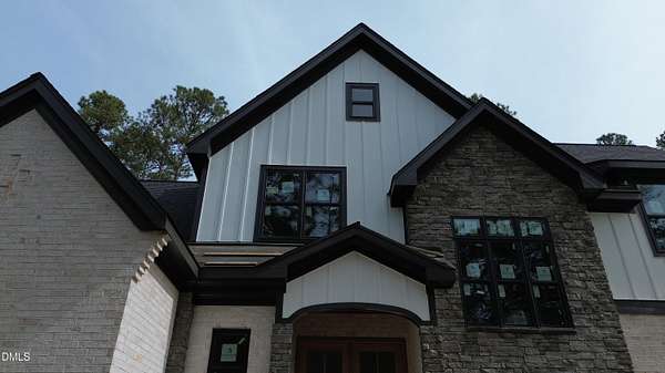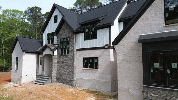 Experience refined living in this exceptional custom home set on 2.5 private, wooded acres near Jordan Lake, Seaforth High and the Triangle corridor. Designed with sophistication and a sense of serenity, this 3,688 heated square foot residence (5,025 under roof) offers a rare blend of architectural elegance and natural beauty. The main level showcases a luxurious primary suite retreat and a private guest suite. Every bedroom features its own ensuite bath for comfort and privacy. Thoughtfully designed living spaces offer a seamless balance of grand-scale entertaining and intimate everyday living. At the heart of the home, a designer chef's kitchen features an expansive island, custom cabinetry, and a generous walk-in pantry. Appliances include Cafetm 34'' smart dual fuel commercial style 6 burner range, 36'' designer wall mount hood, custom fit Energy Star stainless interior Smart dishwasher with ultra wash top rack and dual convection ultra dry. Space flows effortlessly to a stunning vaulted screened porch and outdoor dining area, creating a true indoor-outdoor lifestyle setting immersed in nature. Set within an exclusive enclave of custom homes, this property offers the advantage of no HOA, with minimal covenants, preserving both freedom and architectural integrity. The expansive homesite provides ample opportunity for a future pool, outdoor living retreat, or future boathouse. Photos reflect current construction progress and the craftsmanship of completed residences by this builder.
