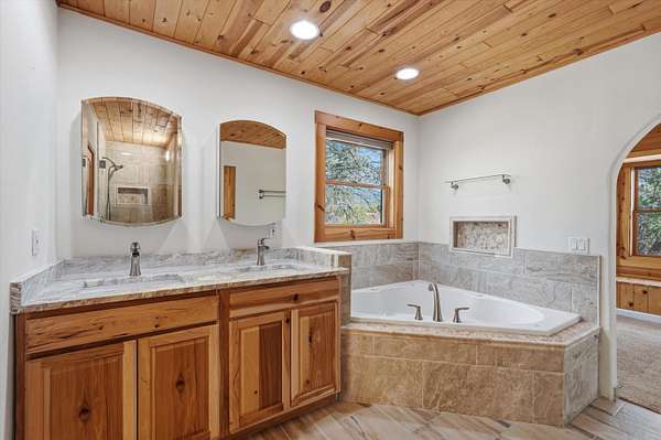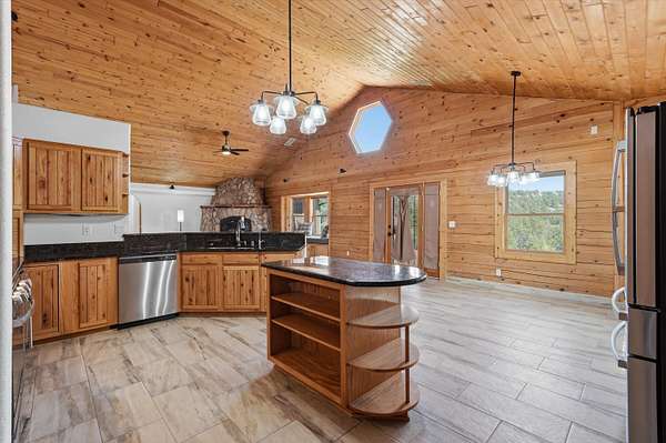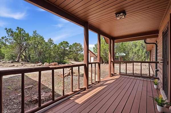 Nestled in the serene foothills of Tijeras, this charming property offers the perfect blend of privacy and natural beauty in a custom mountain log home, & with all the amenities you could want. Just a short 10-minute drive from Albuquerque, and situated at the end of cul-de-sac on 4 wooded acres, this home is both peaceful and practical. Featuring a warm, inviting interior with abundant natural light, the layout is ideal for both relaxing or entertaining. In addition to 3 bedrooms and an office for the flexibility to work from home or as a guest suite, this property boasts a huge oversized RV garage & workshop for all your toys and hobbies, & has a 3/4 bathroom as well! Whether you're seeking a full-time residence or a quiet getaway, this property captures the essence of SW living.