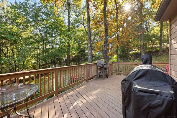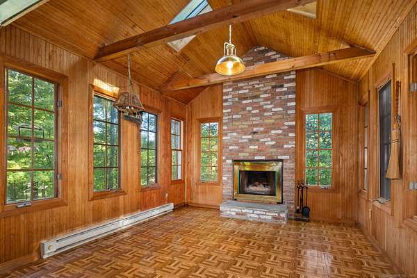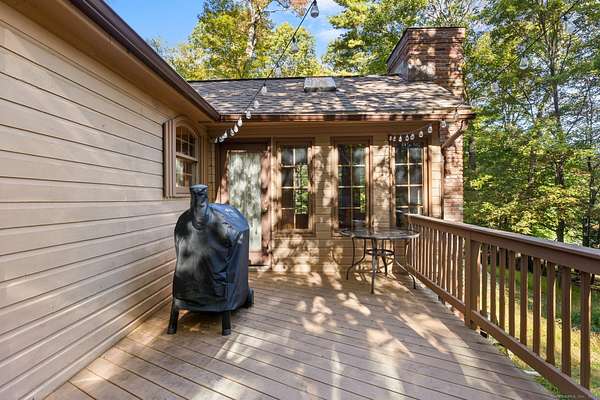 Nestled in the heart of the highly sought-after Candlewood Hill community, this enchanting 1-bedroom, 1-bath cottage offers the perfect combination of rustic charm and peaceful seclusion. Whether you're seeking a quiet weekend escape or a cozy full-time residence, this home provides immediate comfort with the added bonus of expansion potential. Set on a generous, private lot, the home welcomes you into a warm and inviting Great Room, the true centerpiece of the home. A classic wood-burning fireplace creates a cozy focal point, while surrounding windows flood the space with natural light and views of the surrounding landscape. Cathedral ceilings with exposed rustic beams add height and character, while hardwood flooring runs throughout the main living areas, enhancing the home's timeless appeal. Step out from the Great Room onto a spacious deck a perfect retreat for morning coffee, afternoon reading, or hosting friends under the canopy of trees. The expansive yard offers plenty of space for future additions, whether it's a garden, fire pit, or potential home expansion. Located within the Candlewood Hill special tax district, residents benefit from well-maintained roads and community areas, contributing to a beautifully kept and welcoming neighborhood atmosphere. Outdoor enthusiasts will love the close proximity to Squantz Pond, Pootatuck State Park, and Candlewood Lake's town park and public boat launch, all just minutes away. Property being sold As-Is.