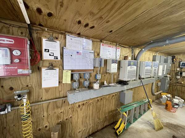 Rotem Platinum Plus with backups - Alarm System - 30x40 enclosed red iron shop - Litter Barn - ChoreTime Revolution Feed Lines - Turbo Growers on a winch - ChoreTime Drinkers with PDS - Tunnel Doors - ChoreTime Poly Fans - Brooders - Sun Guard on Vent Boards - Natural Gas - City Water - 100KW Diesel Generator