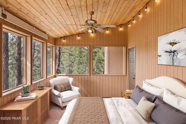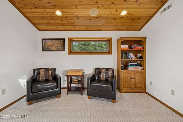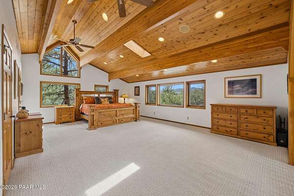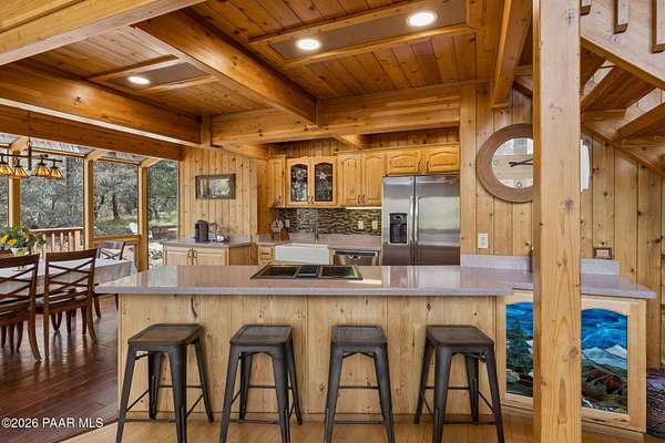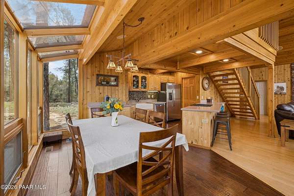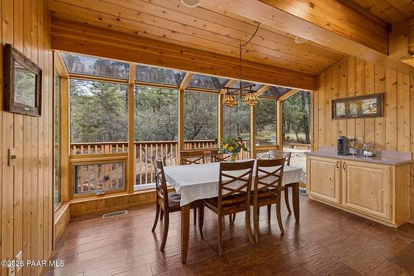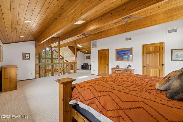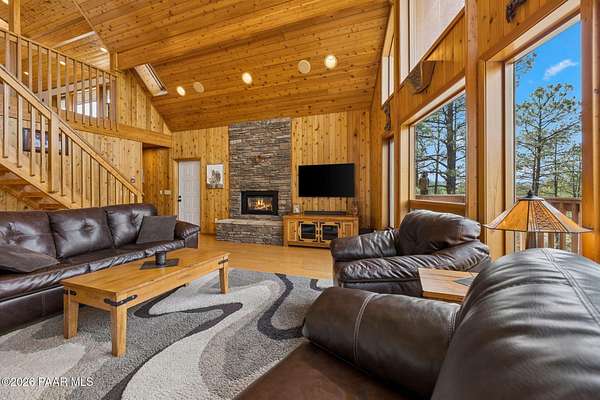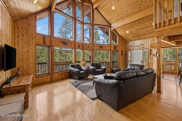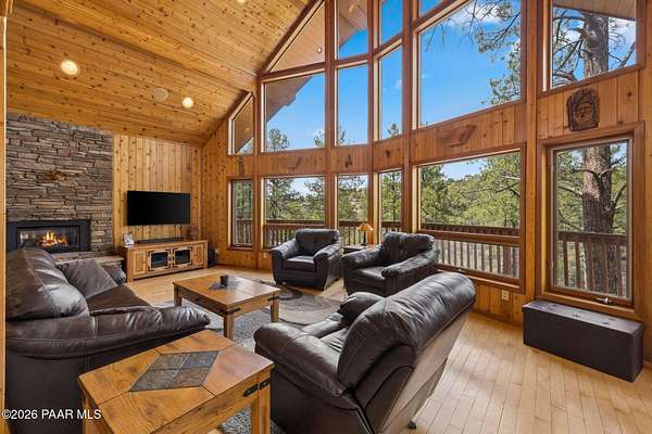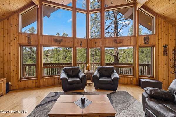 Wow, a Lindal Cedar home in the tall pines for under $850,000 that sits on 1.6 acres and is only 8 minutes from the town square!This stunning custom cabin home located in the cool pines of Prescott has been a high producing short term rental. 35 E Colonels Way is a beautifully crafted Lindal Cedar Home, thoughtfully designed for comfort, privacy, and long-term value. Featuring an IN HOME ELEVATOR, this gem is tucked on 1.62 acres of pristine, wooded land, offering unmatched tranquility while still being a short drive (8 minute) to downtown Prescott's dining, shopping, and historic charm. Built with quality in mind, this home features a lifetime structural warranty, a durable metal roof, and timeless cedar construction (natural termite repellent). From the stunning vaulted great room, open floor-plan, thoughtful entertaining spaces, and abundant natural light the home seamlessly blends nature with modern comfort. Inside, you'll find 2 beds, 2.5 baths, and 2,160 sq ft of stunning living space, finished off with a wonderful screened-in porch which could easily be converted into a 3rd bedroom. On the ground level you find a large laundry room with utility sink and storage, an oversized 2 car garage with a spacious workshop including built-in cabinetry and workbench. Also on this level is the handy mechanical room providing easy access to the hot water heater, whole home water treatment system, and other equipment for the home. This home is so beautiful it was featured as the prime shooting location for an independent film on Amazon! This is more than a home, it's a potential income-producing investment. Being sold furnished, the home has an outstanding history as a short-term rental, (stats available to serious buyers). Colonels Way is an excellent investment for those looking to generate passive income while enjoying the flexibility of personal use. Additional highlights include, elevator access to main level from ground floor, 2 expansive decks for taking in the incredible scenery; abundant storage, surround sound through home, in-floor heating and HVAC, jetted soaking tub, great flex space screened porch, extremely private setting, and quick and easy access to all Prescott has to offer. New flooring installed in the bathrooms, kitchen, and dining area. Brand new sink in the master bathroom, refinished decks, whole home water treatment system installed along with a strong producing brand new well!Whether you're seeking a serene personal escape, a profitable vacation rental, or both, this one-of-a-kind mountain retreat is ready to deliver.