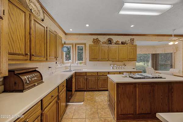 - Ceiling Fan(s), Double Vanity, Eat-In Kitchen, Entrance Foyer, Fiber Glass Shower, Kitchen Island, Laminate Counters, Primary Downstairs, Walk-In Closet(s), Wet Bar