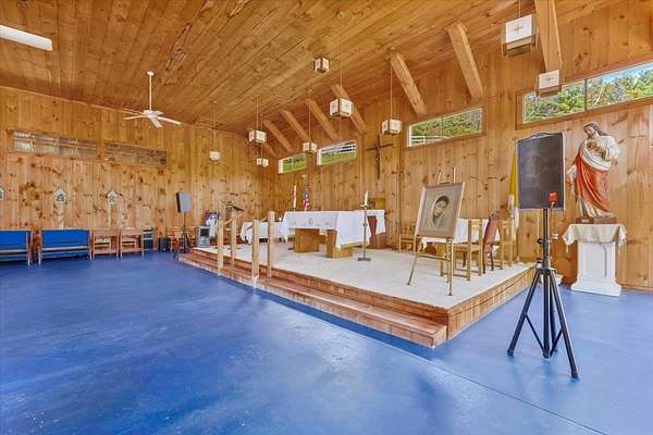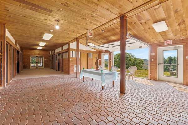 Perched on a quiet country road in Jamaica, Vermont, this unique property offers spectacular mountain views and an unbeatable hillside location, just minutes from Mount Snow, Stratton, and the villages of West Dover and Jamaica. Originally a horse barn, the building has been thoughtfully and professionally converted into a house of prayer, with endless possibilities for its next chapter. Run it as an inn, reimagine it as a wedding or event venue, create a performance or recording space, or continue its legacy as a retreat center. The lower level features 8 individual guest rooms (some adjoining for families), each with its own bath, along with a welcoming entry office, kitchen, gift shop space, and a cozy gathering area. The chapel space offers versatility, easily reimagined as a studio, meditation room, or creative hub. Horse stalls at either end now serve as storage. A walkway leads to a spacious, heated upper chapel hall with a barn-inspired aesthetic, well-suited for weddings, concerts, or large group gatherings. The upper level also offers flexible living with two studio apartments, a one-bedroom apartment, two offices, and a large common room. Set on approximately 35 acres, the property includes fenced pastures, an outdoor grass arena, and a second, more rustic barn at the upper boundary. In the woods, a charming open-air A-frame hut provides a quiet place for reflection. This remarkable property has been cared for with love and is ready to inspire its next owner.