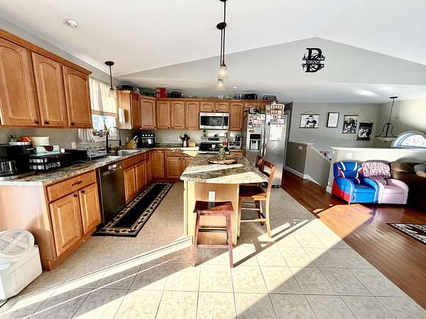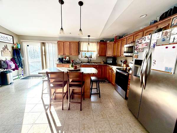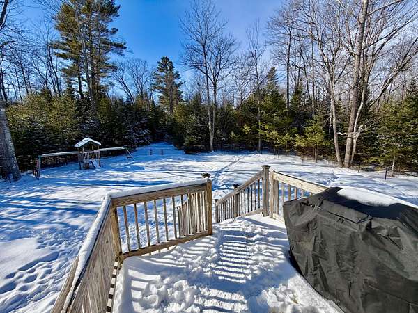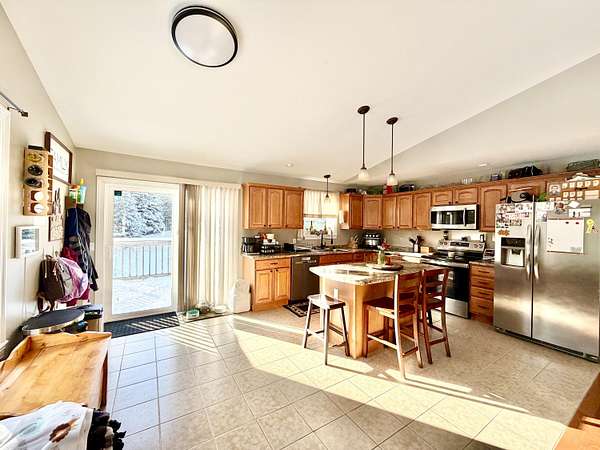 Vacationland Realty 207-745-4522 vacationlandrealty@gmail.com Welcome to 35 French Road in Levant, a Quiet, Deadend Road in the country. You will fall in love with the big open floor plan with vaulted ceilings in the kitchen/dining/living room room with sliding glass doors out to a large fenced yard. The eat-in fully applianced stainless steel kitchen has a kitchen island with barstools. You will love how the sun pours in through all of the rooms. The newer heat pump will keep you cozy and warm in the winter time and cool in the summer. There are beautiful hardwood floors in the living room. It has a high end designed primary bedroom that you will die for! Huge custom made walk-in closet and full bath with double sinks, soaking tub, and walk-in shower with amazing showerheads. It has a possible five bedrooms or four bedrooms and a den, 3 full baths and a huge recreation room. The home is vinyl sided, has a propane furnace and two heat pumps, washer and dryer stay, as well as the portable generator. The driveway is crusher dust, and it was just leveled. There are garden beds on the front and side of the home and two producing pear trees. You will love the private location, which is only 20 minutes to Bangor and 15 minutes to Newport. Make an appointment today!