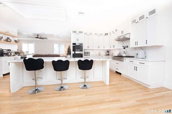 Private Hilltop Retreat on 2 Acers| Heated Pool, Fully Renovated 2024. Perched atop a scenic hill set on nearly two acres at the end of a quiet Cul-de-sac, this fully renovated 2024 residence offers privacy, space, and exceptional modern upgrades. Featuring 7 rooms,3 Bedrooms,3 full baths and 1 half bath. Main level is 3020 sf; Basement level also3020sf finished but not heated. The home is thoughtfully designed with high-end finishes throughout. The chef's Kitchen showcases quartz countertops, a center island with breakfast seating, premium appliances, wine cooler and a convenient pot filler-perfect for everyday living and entreating. A second Kitchen adds flexibility for multi-generational living or hosting guests. Enjoy spa-like bathrooms with heated floor and dedicated heated ventilation system. Additional upgrades include two central unit (2 years old), hybrid heat pump water heater with humidifier, central vacuum system, and spay foam insulated walk-up attic for enhanced energy efficiency. Step outside to your outdoor retreat featuring a heated in-ground pool with slide and waterfall, expansive patio, and Bocce court, ideal for entertaining or relaxing in a serene setting. Additional highlights include a three-car garage, sprinkler system, remote-operated sheds, cedar closet, and reinforced private office in the basement, ideal for secure work-form-home needs. A rare opportunity to own a private, move-in-ready hilltop home with resort-style amenities in Shelton.