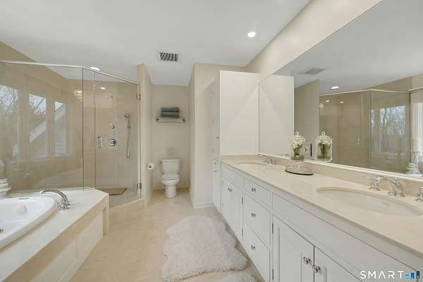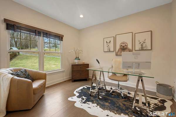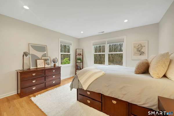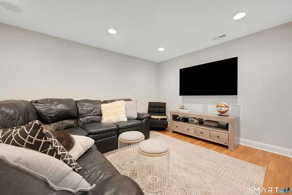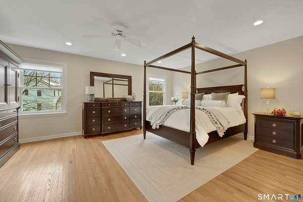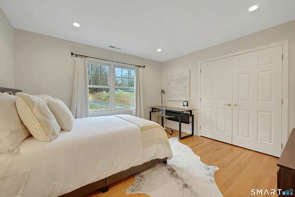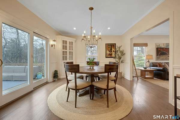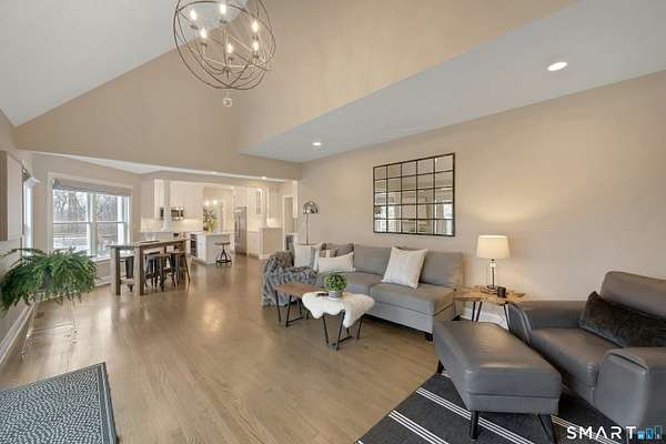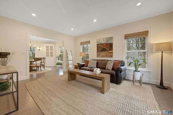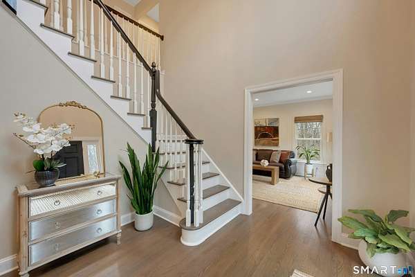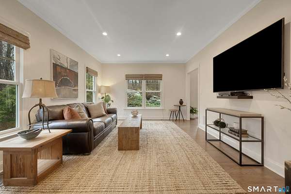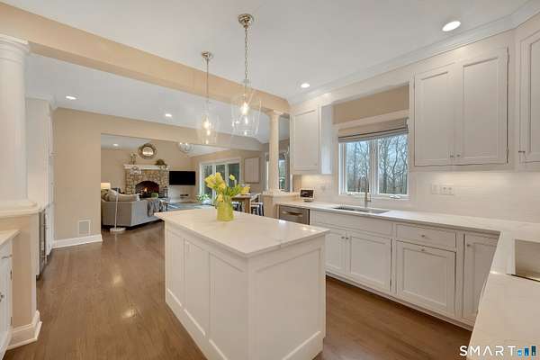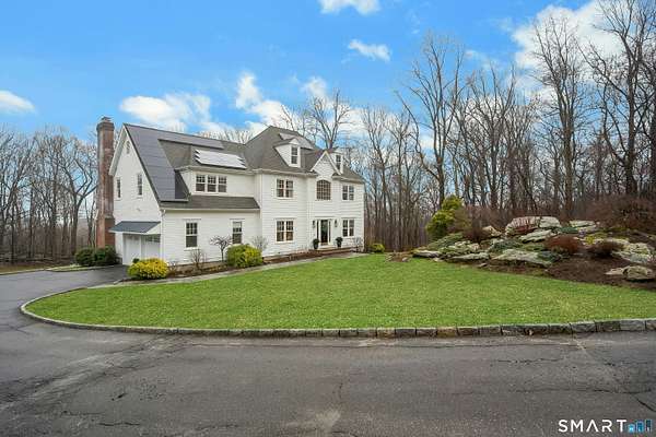 Welcome to this beautifully, renovated colonial, nestled in a quiet cul-de-sac in desirable Easton, Connecticut. Set on nearly 2 acres of professionally landscape property, this charming, four bedroom home offers the perfect blend of privacy, comfort, and classic New England character. Inside, you'll find spacious living areas filled with natural light, including a stunning family room featuring a soaring Cathedral ceiling and a stone fireplace- an inviting focal point for gatherings year round. Glass doors open from the family room to an impressive 60 foot deck that spans the back of the home, creating an ideal space for outdoor entertaining while overlooking the expansive backyard. The remodeled kitchen features newer, stainless steel Bosch appliances, a large center island and quartz countertops. Windows overlook the spacious backyard filling the space with natural light. The home includes four generously sized bedrooms, two full redone bathrooms, and 2 half baths. A finished basement provides additional living space perfect for a recreation room, home office, or gym. Recently repainted inside and out the property is truly move-in ready. Located just minutes from the public Smith Richardson Golf Course, this home offers exceptional convenience for golf enthusiasts, while maintaining a peaceful residential setting. This is a rare opportunity to own a beautifully updated home on a large, private lot in one of Easton's most sought after neighborhoods.