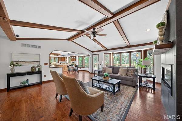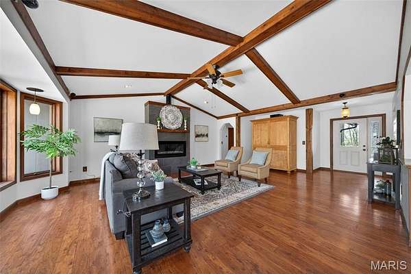 Enjoy serene country living on 3+level, wooded acres in picturesque Defiance! This spacious 4-bedroom, 3.5-bath ranch offers an open floor plan with hardwood flooring throughout, fresh paint, and a new roof. The expansive kitchen features custom oak cabinetry, Corian countertops, center island with cooktop, double ovens, Sub-Zero refrigerator, built-in desk, and pantry—flowing seamlessly into a bright breakfast area with bay window and a stunning family room with vaulted, wood-beamed ceiling, floor-to-ceiling gas fireplace, intercom system and built-in surround sound.