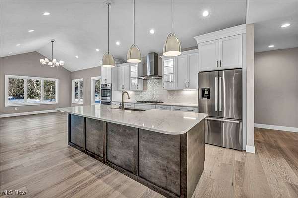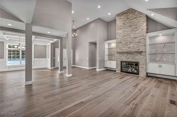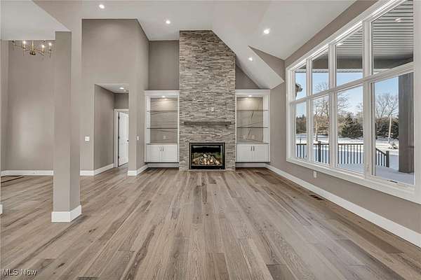 Discover your dream home, a custom luxury estate in Chagrin Falls. Prepare to be captivated by an exquisite custom-built residence, set for completion in January 2026, from the master craftsmen at Dommus Construction Corp. This magnificent 5-bedroom, 5.5-bathroom home, featuring a walkout lower level, is ideally situated on a highly coveted 2-acre hillside parcel in Chagrin Falls, offering breathtaking views of a stunning ravine & valley. Here, secluded grandeur meets convenient access, all within the prestigious Chagrin Falls School District. This home offers unrivaled design & uncompromising quality. Step inside this new build and experience over 4,000 finished square feet of meticulously designed living space. The modern open layout is perfect for both grand entertaining and family life. Be awestruck by the dramatic two-story foyer and great room, featuring a striking stacked stone fireplace. Every detail has been thoughtfully curated with the finest materials, including rich Shaw hardwood floors, lustrous quartzite countertops, elegant high-end porcelain tile, & Bosh appliances. The gourmet kitchen is further enhanced by exquisite Wellborn maple cabinetry, and premium Pella Windows bathe the home in natural light. A Sanctuary for Elevated Living. Designed for gracious gatherings, this luxury new build provides an idyllic setting for creating cherished memories with family and friends. An expansive, fully paved turnaround driveway ensures effortless parking for both residents & guests. Embrace a lifestyle of unparalleled convenience, with everything you desire just moments away. This is a rare opportunity to acquire a home where sophistication meets an enviable location. We invite you to experience the unparalleled elegance & exceptional value of this Dommus Construction masterpiece.