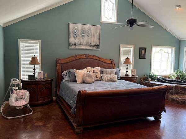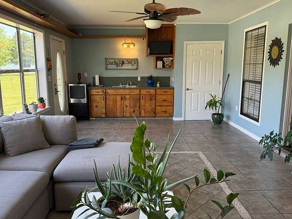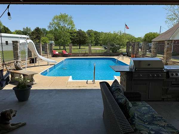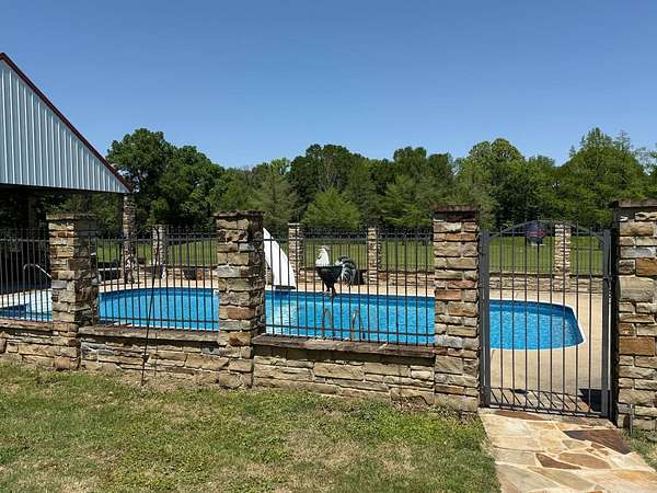 This beautiful house & homesite is truly a turnkey property with all the amenities. Located on 30 acres +/-. A spacious 3,200 square foot, 3BR, 3 full baths, jacuzzi tub in the master bath, volley ball 20' X 40' swimming pool with pool house that includes outdoor kitchen, grill, sink, refrigerator, bathroom, stone outdoor fireplace which is perfect for year round entertainment. A fantastic shop for equipment that is 60; x 80' with 30' door and 20; x 80, drop shed that can store an airplane or all you outdoor equipment, also a 20' X 55' R.V. shed with electricity and water. When bad weather arrives, there is a 12' X 12' concrete storm shelter for protection. The north line along I-20 has 1200 +/- feet that may be used for commercial or billboards for potential income and includes a 92.5' flag pole that can be seen by millions on I-20. Included in the 30+/- acres is some open ground for horses, cows or farm animals as well as some timberland that will provide excellent trophy Whitetail, small game, duck and dove hunting along Little Creek. Opportunities also include fishing in pond that has a 6" submersible well that dumps 75 gallons per minute. This pristine property on a dead end, peaceful road is only minutes from the META site for new employees. Come take a look.
