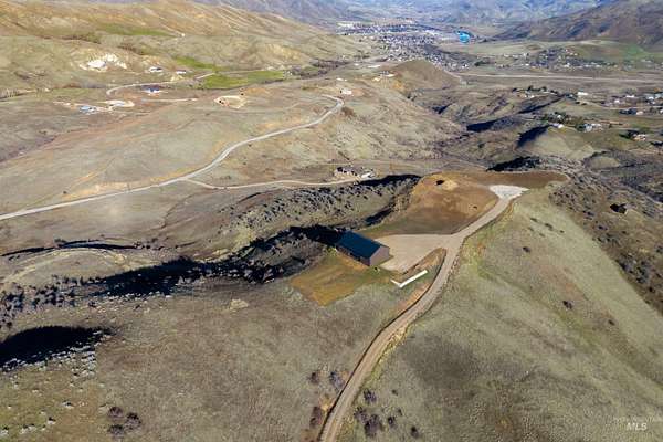 Stand atop your private mountain, with the Payette River below, framed by rolling hills and distant peaks that change with the seasons. This 52-acre retreat, just 15 minutes from Eagle and 25 to Boise, invites you to build your dream home on the ready-to-build pad, where every window offers a masterpiece-360-degree views of river, valley, and mountains. Enjoy coffee on your future porch at sunrise; stargaze under clear night skies. The property is prepared for your vision, featuring a fully finished 40x60 RV garage/shop w/ full RV hookups (50amp & 2, 30amps), a full bath, w/W&D hookups & tankless water heater. Built with 2x6 framing on slab, R-21 blown-in insulation, and R-39 ceiling insulation-offering a turnkey foundation for your rural escape. Dual septic systems-one for the garage, one for your future home-a private well for self-sufficiency, with underground power preserving the stunning views. More than just land, this is your legacy-a homecoming to what truly matters.