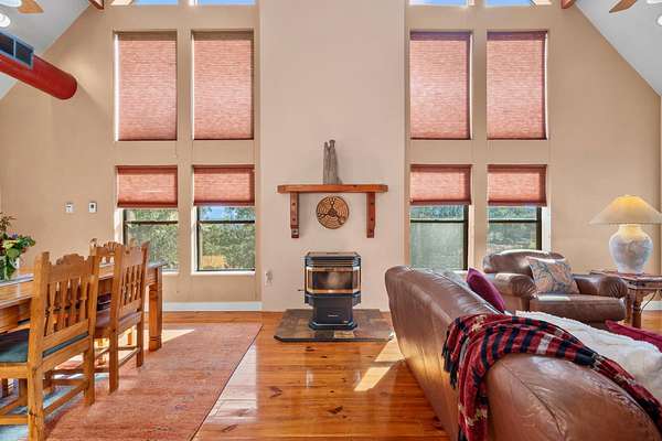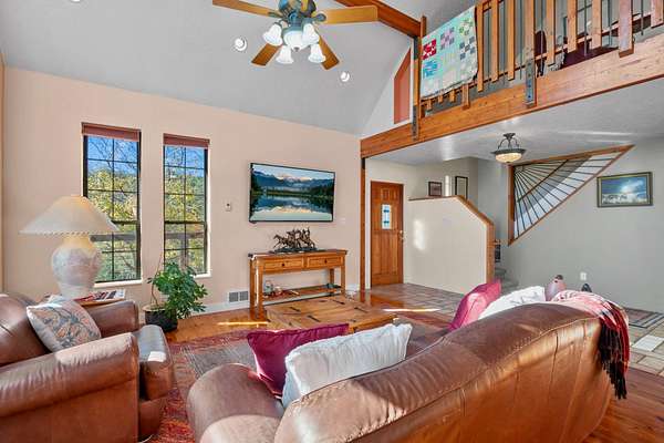 This one-owner home captures what people love about mountain living--peace, privacy, and endless views--while keeping Albuquerque within easy reach. Sitting on over 2 acres, the 3,062-square-foot, three-story layout blends warmth and space with sunlight in every room.The main level's open living area has all the comforts you expect yet still feels like a mountain retreat; this level is completed with two bedrooms & a large full bath. Downstairs, a large bonus room offers flexibility for a game room, creative space, or extra hangout; it includes a bathroom with shower, laundry room & lots of storage. Upstairs, the owner's suite spans into the loft, where morning light and the views remind you how special this setting really is.Practical features include an oversized garage, passive