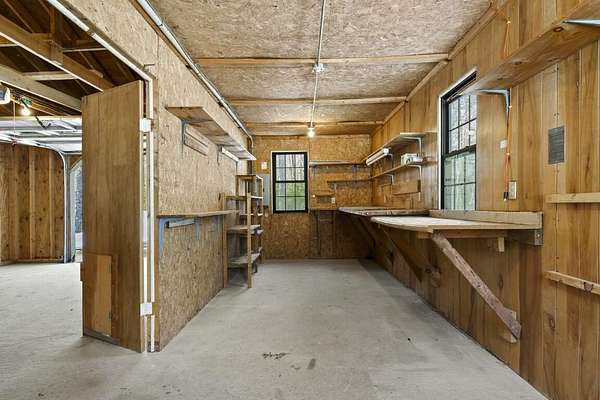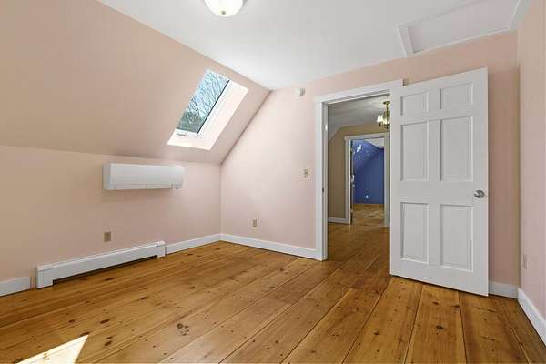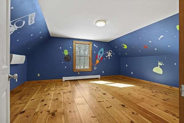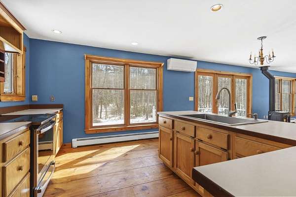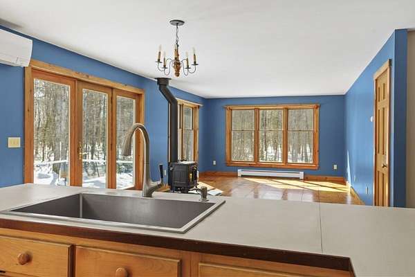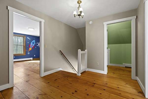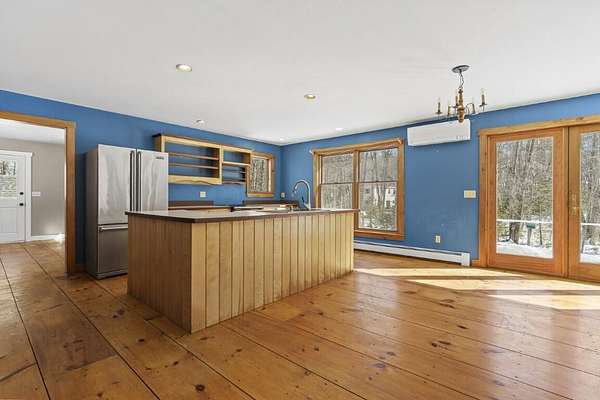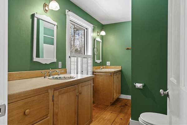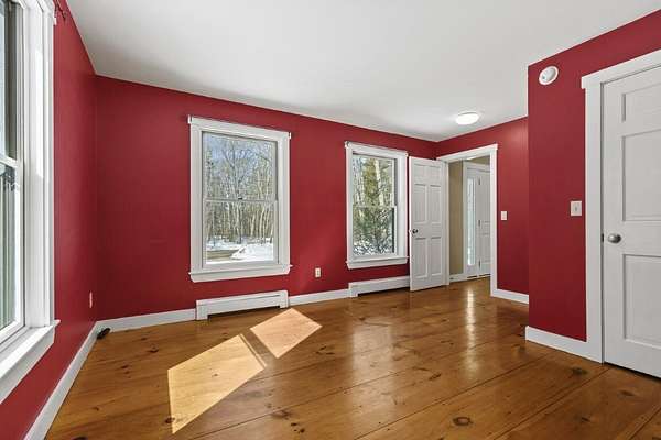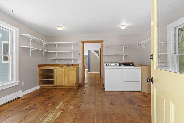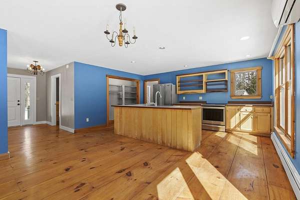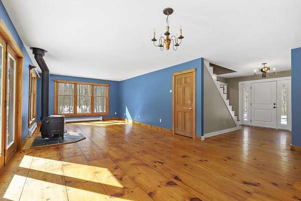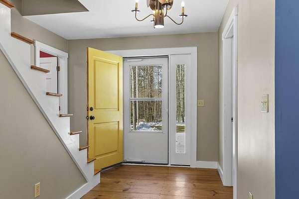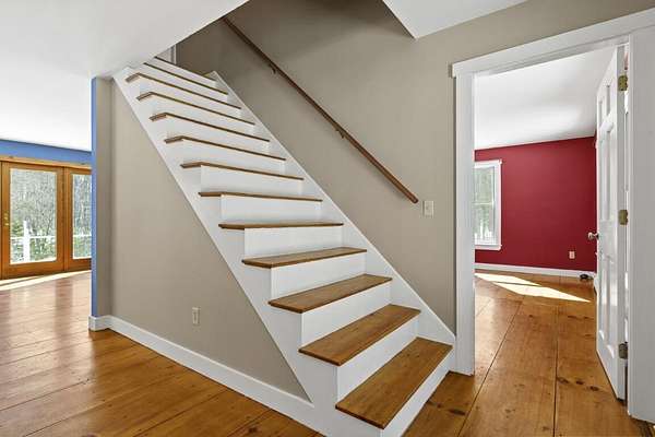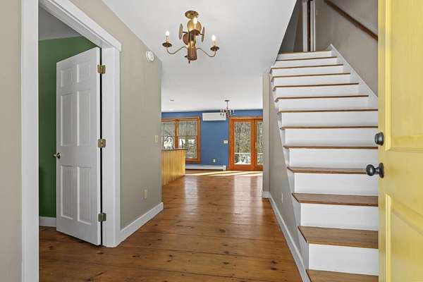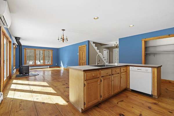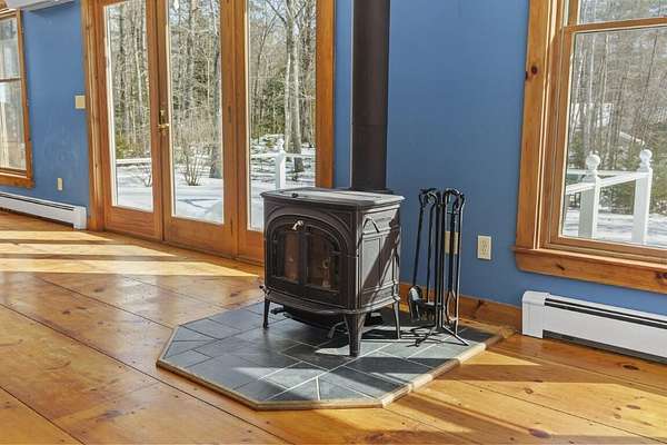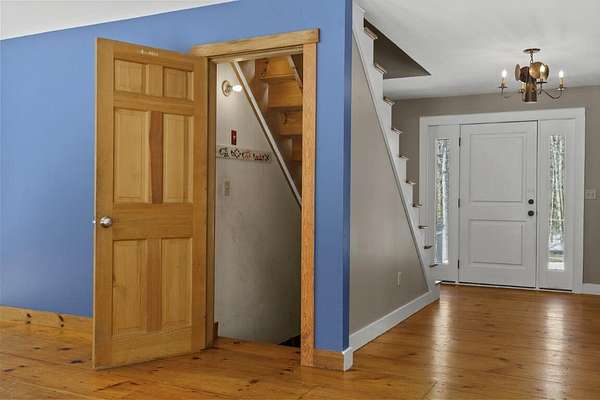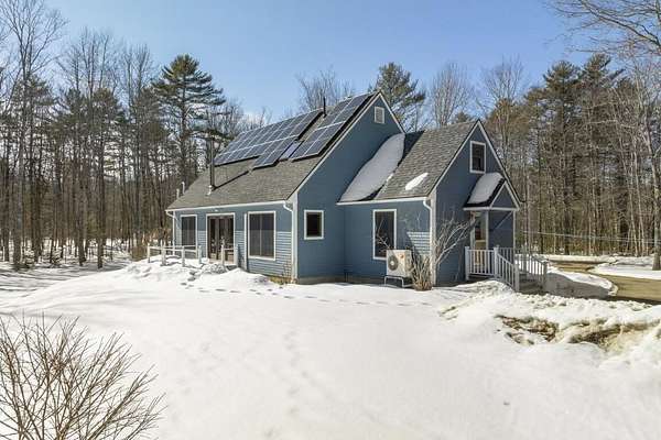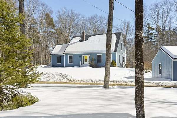 This cape located on a 2.03 acre lot in the Old Farm Cove Subdivision offers an open floor plan for the kitchen, dining, and living areas. Numerous windows overlooking the yard from the living area bring in plenty of light and the wide plank pine floors throughout the home provide a warm, welcoming feel. There is one bedroom and bath on the first floor and two bedrooms and bath on the second floor (note that the septic system is rated for 2 bedrooms). Other features include - a detached garage with workshop area, solar panels that help lower your electric bill, installed radon air and water mitigation systems, auto generator, heat pumps to supplement the oil fired hot water heating, and for fun, a common access to Duck Puddle Pond for swimming and kayaking.