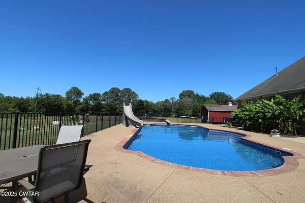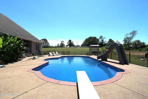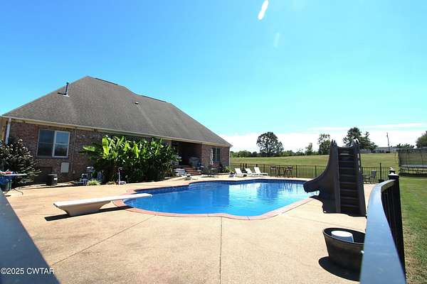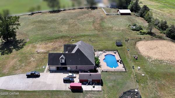 Beautifully crafted custom brick home situated on 18.46 fenced acres with a pond. This spacious residence offers 4 bedrooms and 3 full baths on the main level, plus a large bonus room (41x16) upstairs complete with a full bath, closet, and built in bookshelves-perfect for a guest suite, office or recreational space. The heart of the house features a chef's kitchen with custom cabinetry, large pantry, and all appliances remain for the new owners. A cozy hearth room with fireplace provides the perfect gathering space, combining warmth and comfort with open views of the property. Step outside to your private retreat featuring a saltwater pool with diving board and slide, ideal for entertaining or relaxing on the patio. The home features a 3-car attached garage as well as an additional garage/outbuilding (32.9x14.7) for extra storage, man cave or she shed. Equestrian and hobby enthusiasts will love the barns, including one measuring 25.5x19.9 and another 13.5x14.3, providing plenty of room for equipment, animals or projects. With fenced pastures, barns, outbuildings, and a pond, this property offers the ideal blend of comfort and functionality for country living -while still providing luxurious, custom home. An exceptional property that highlights the beauty and rural charm of West Tennessee's countryside. Info deemed accurate, not warranted by company, seller or agent. Sq footage to be determined by appraiser and taxes to be determined by assessor.