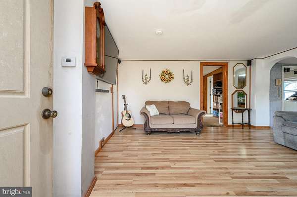 Location, Location! Spacious 3 Bed 1 Bath Home with Oversized Detached Garage in desirable Robbinsville is bursting with possibilities! Situated on a sprawling 3 acre lot with plenty of extra space to build and expand, its perfect for those looking for lots of land and a home to make their very own. Situated in a convenient commuter location with easy access to the NJTPKE and Route 195, you're also just minutes away from historic Allentown, parks, a scenic lake, Town Center shopping, top rated Robbinsville schools, and just 3 miles to Hamilton Market Place. Step in to this charming home to find a spacious, light and bright living room with lovely laminate floors that shine and a large picture window that brings in tons of natural light. Sizable eat-in-kitchen offers ample cabinet storage and dinette space. Dedicated laundry/mud room with rear yard access adds to everyday convenience. Versatile dining room can double as a 4th bedroom. Primary bedroom on the first floor, equipped with a toilet, offers accessible one level living. Head upstairs to find the main full bath with tub shower, along with 2 more large, private bedrooms. Full basement offers utility access and plenty of storage space. Huge, sprawling backyard offers endless possibilities, and includes a large storage shed, bbq grill, and an impressive 20x30 garage with 220v + 120v and cozy wood stove, ideal for contractors, hobbyists, etc. Double wide driveway offers ample parking for multiple large vehicles, an added bonus. This could be the hidden gem you've been searching for. Don't miss out! Come and see TODAY!