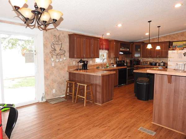 - Breakfast Bar, Ceiling Fan(s), Chandelier, Crown Molding, Double Vanity, Formica Counters, Pantry, Recessed Lighting, Soaking Tub, Vaulted Ceiling(s), Walk-In Closet(s)