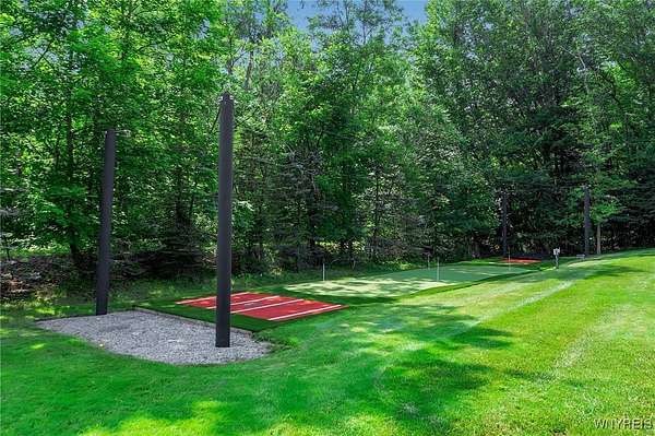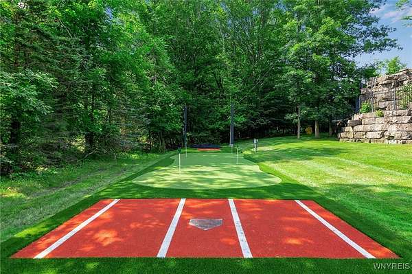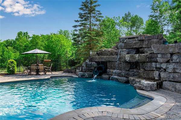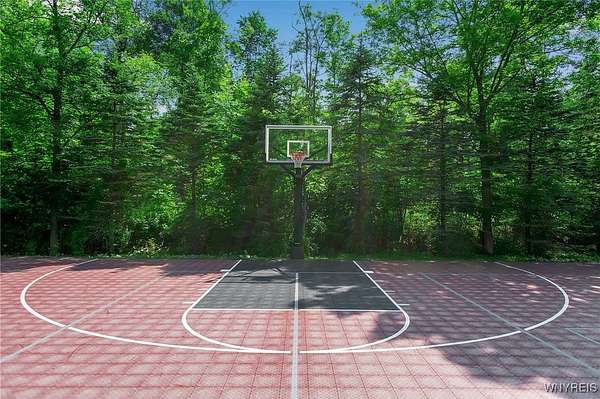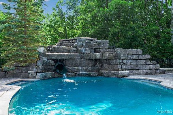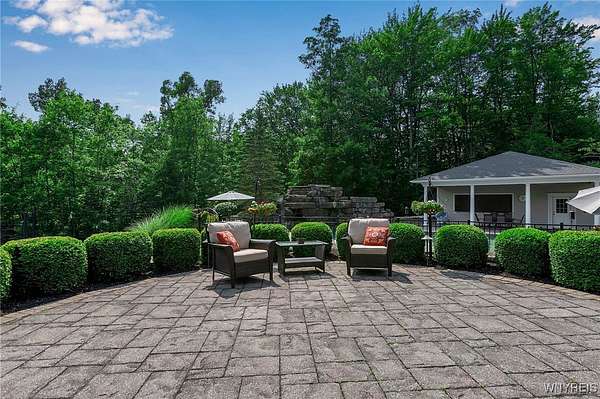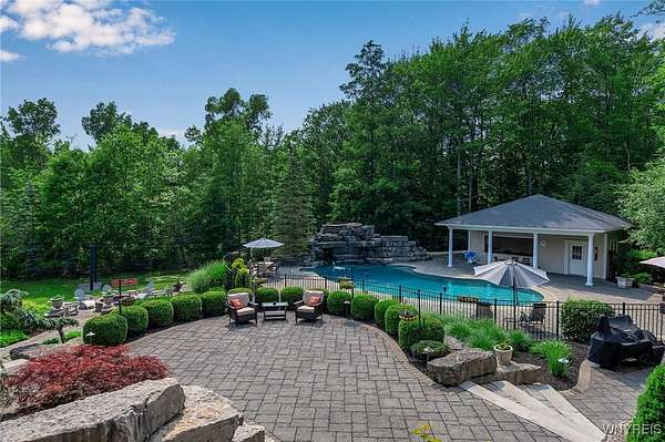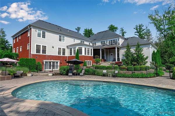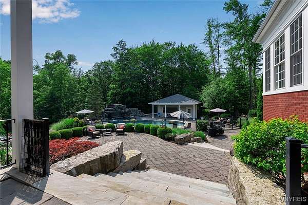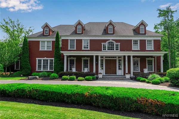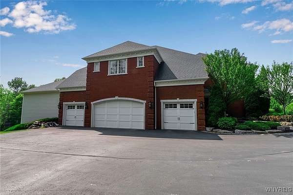 Experience the finest of luxury living at 35 Redbrick Road, nestled in the prestigious Eagle Heights. Crafted by renowned builder Thomas Johnson Homes, this extraordinary 10,125-square-foot estate is a rare offering that masterfully blends timeless architecture, grand scale, and sophisticated amenities. Set on nearly two acres of impeccably manicured grounds, the all-brick facade sets the tone for the elegance found throughout. This residence boasts eight spacious bedrooms, six full and 2 half baths, with richly appointed living spaces ideal for both everyday comfort and world-class entertaining. Resort-style amenities include a custom-designed Beauty pool, updated mechanics, a dedicated pool house, expansive stone hardscape, indoor and outdoor sport courts, a putting green which doubles as a batting cage. This home boasts Four floors of premium luxury living space- The 3rd floor is used as media room with projector and screen. The basement is fully finished offering a walk-out living space, home gym, poker room & plenty of room for storage. The four-and-a-half-car garage adds function without compromising form. Every inch of this estate reflects elevated design and meticulous craftsmanship - a truly rare opportunity to own one of Orchard Park's most iconic properties. Buyer prequalification required for private appointments.