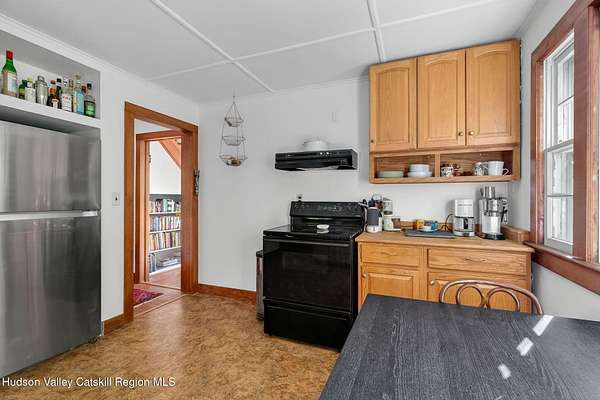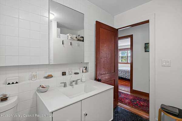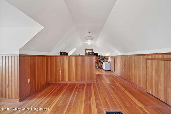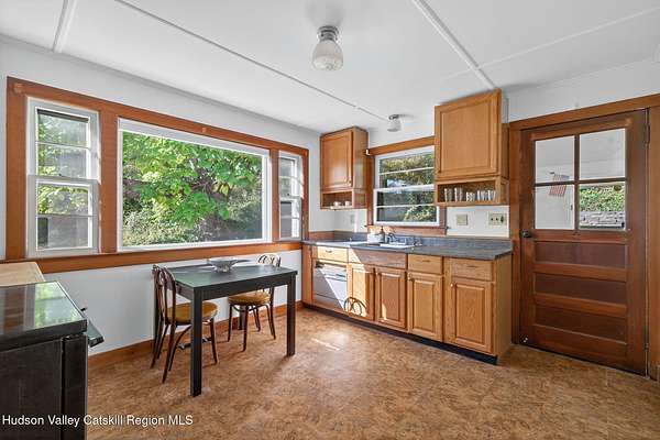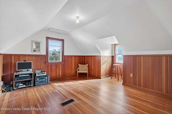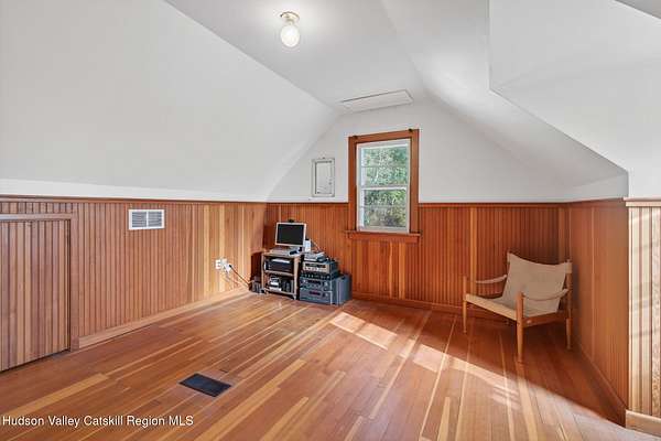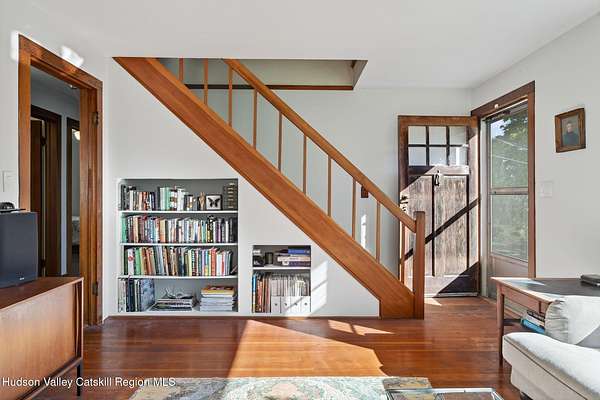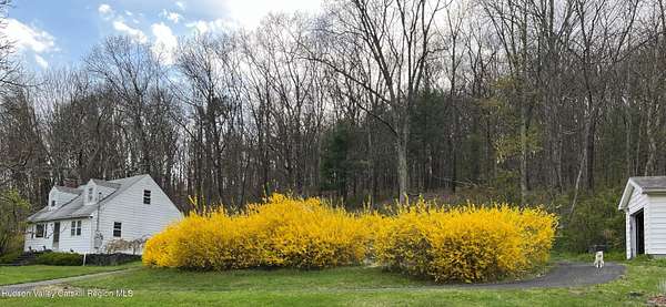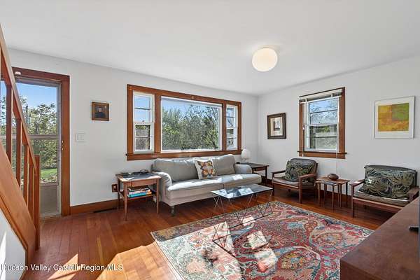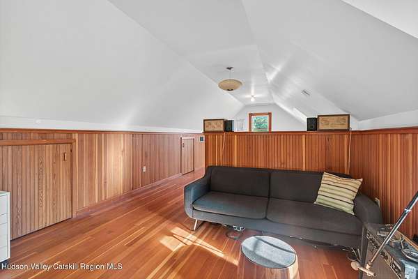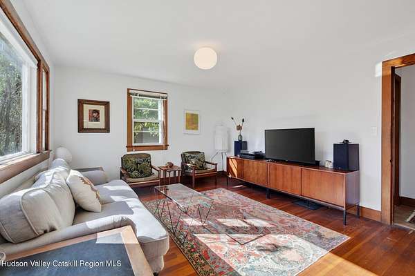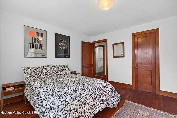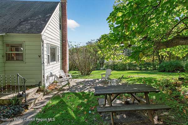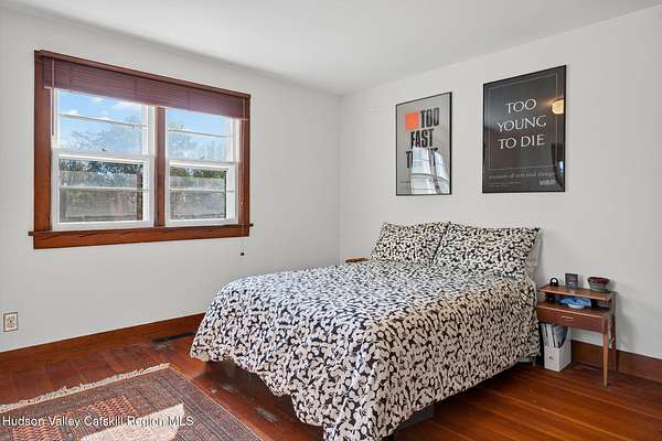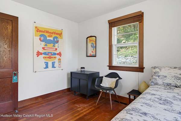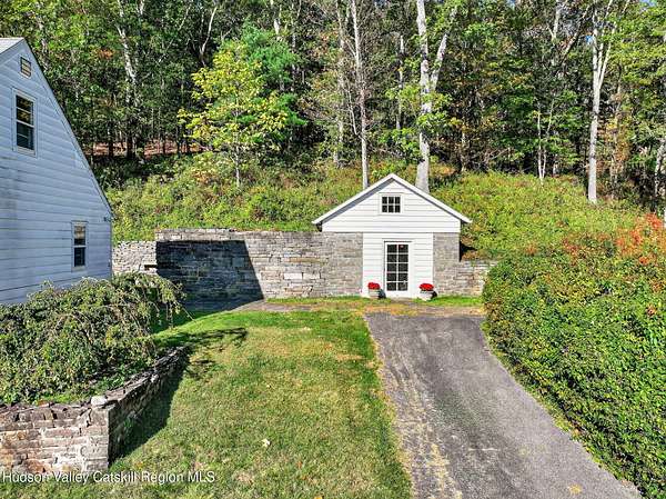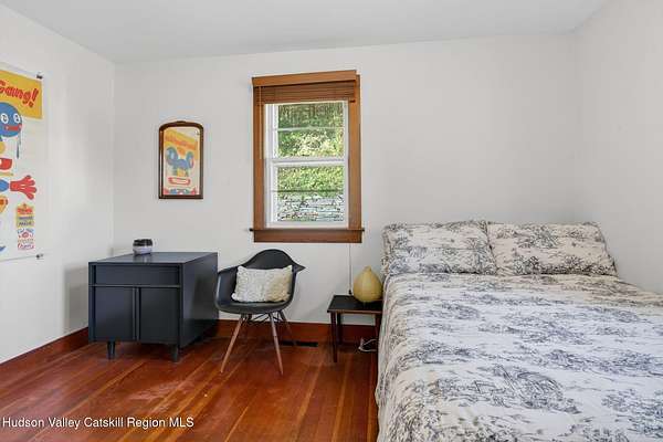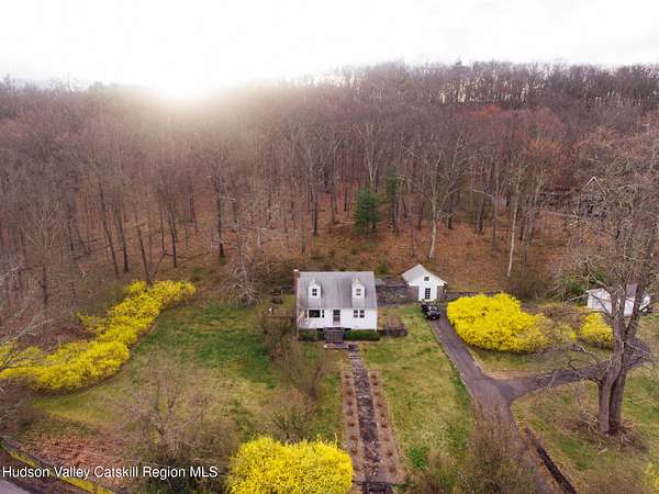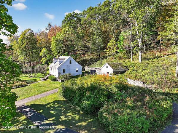 Full of character and warmth, this 1938 Cape sits on just over 4 acres - 2 acres with the home plus an additional 2.14-acre lot - offering both privacy and potential. The home exudes vintage charm with its hardwood floors, abundant natural light, and beautifully remodeled bathroom. Thoughtful touches like bluestone walkways and stone walls add timeless Catskills character to the grounds. Two comfortable bedrooms are located on the main level along with the newly updated bath. The upstairs is fully finished and ready for your vision - with a bit of updating, it could easily become a wonderful primary suite. Plumbing has already been run to the space, making it simple to add an additional bathroom if desired. Outside, a detached garage and an old-fashioned root cellar building-both equipped with electricity-provide excellent options for storage, workshop, or studio space. The original root cellar built into the hillside behind the home is a charming and functional nod to the property's history. Overlooking a picturesque farm across the street and surrounded by open space and mature trees, the setting offers peace and natural beauty. Conveniently located just minutes to the Village of Saugerties, NYS Thruway Exit 20, Total Tennis, and HITS-on-the-Hudson, with the vibrant town of Woodstock only about ten miles away. A classic Catskills gem with room to grow and make your own.
