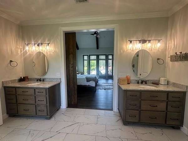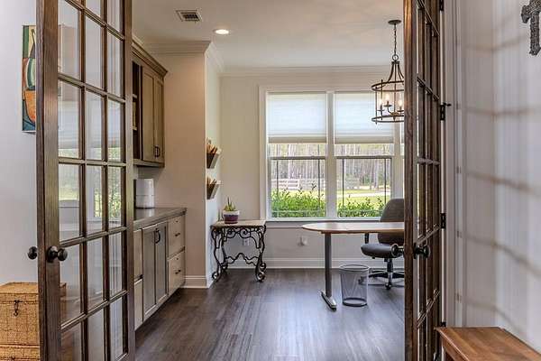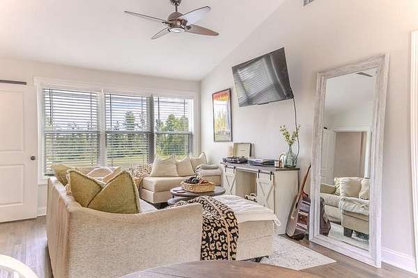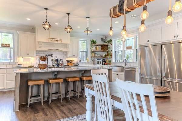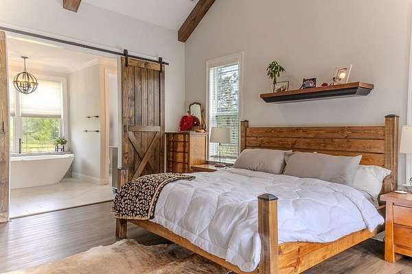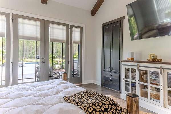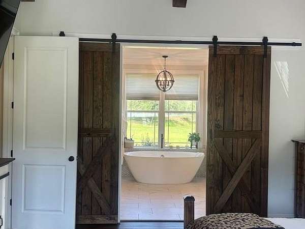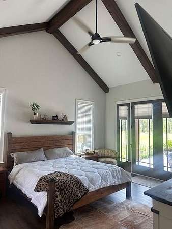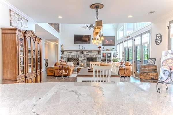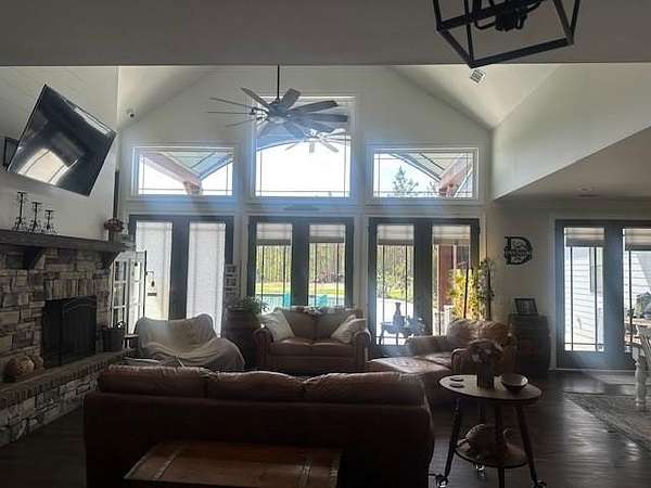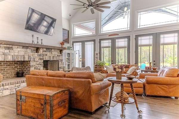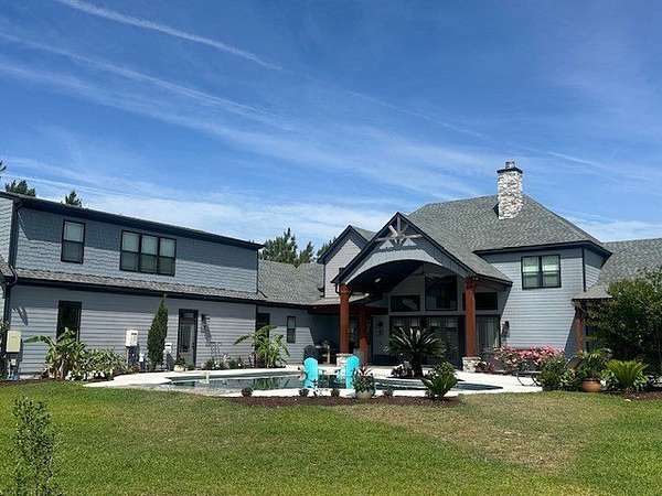 54 ACRES, 7 ACRES Stocked Pond, Fenced Pastures, Gunite Pool and Two Houses. The Main Dwelling is 5 bedrooms, 4.5 baths total of 4468 heated sq ft. with a complete studio apartment above the 3-car garage. This house has it all! The Gourmet Kitchen is large and open with a 60"Pro Wolf Double oven with grill, Bosch dishwasher, Fisher & Payket double 34 ft dual bottom mount refrigerators, Scottsdale icemaker, pot filler, deep farm sink, granite countertops and 5-seat island. The custom alabaster cabinetry with white backsplash, cedar shelving, and oversized walk-in pantry. The living room area has large windows overlooking the pool and large back porch, a stone fireplace, and a wrought iron stairway that leads to the second floor. The second floor has 2 bedrooms with a jack and jill bathroom, and a 3rd bedroom with a separate bathroom with tile shower and walk-in closet. The upstairs loft area overlooks the living room. Flowing from the living room you enter the 1st office through French doors with large windows overlooking the fields and pond with built-in shelving. The downstairs master bedroom has wooden vaulted ceiling beams and French doors opening onto the back patio/ pool area. The bookcase /doorway unlocks the hidden 2nd office/safe room. The master bathroom has dual vanities, soaker tub, and tile shower. In the hallway, even the pets have a house underneath the stairs. Sitting above the 3-car garage is the Studio Apartment. This 820 sq ft. consists of a bedroom, bathroom, kitchen, laundry room, living room, and balcony. Retreat to the back porch for a cool swim in your 16x32 granite pebble pool with 16x12 beach entry, 5 in-pool bar stools, 2 umbrella holders, & lights. Or retreat to the front porch to overlook the 7-acre stocked pond, pastures, and abundant wildlife. 2 wells (3 irrigation systems). Whole house Generac, fiber-optic internet, and surround sound speakers. (MLS# 153321 - 35 Tyler B, a 2022 Lake House Destiny Floor 32x70 plan, 3 bedrooms & 2 baths