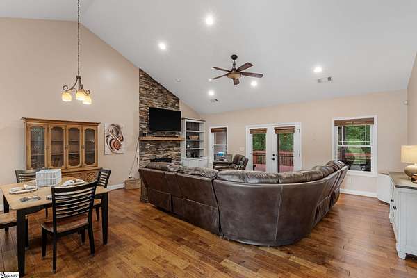 Holiday Open House: Saturday, December 13, 2025, from 11:00 AM - 2:00 PM. Step into the season at 35 Villa Court, where lakefront living meets holiday warmth. Nestled on 1.64 private, wooded acres along the Lake Hartwell shoreline, this 3-bedroom, 3-bath retreat offers more than a home. It offers a lifestyle meant to be shared. With over 2,700 square feet of thoughtfully designed space, this home seamlessly blends spacious gathering areas with cozy nooks, making it ideal for slowing down during the holiday season. On the main level, the inviting primary suite and open-concept living area take full advantage of peaceful lake views. Whether you're hosting Thanksgiving dinner, trimming the Christmas tree, or sipping cocoa on the deck wrapped in a soft blanket, this level sets the tone for festive, memorable moments. Downstairs, an additional bedroom and flexible living space provide plenty of room for visiting family and holiday guests. Make it your personalized vacation retreat during travel season. The boat garage and storage area make lake living simple, even in winter's quiet beauty. Outside, a 4x16 ft. gangway leads to your private dock, which is perfect for a crisp morning stroll, winter fishing, or watching the reflections of holiday lights dance across the water. A 3-car garage gives you abundant storage for vehicles, golf carts, paddleboards, and all the extra seasonal decor. Dock permits will transfer to the new owners, ensuring everything is ready for your next chapter. The largest allowable dock is 40 ft. W x 10 ft. L, paired with the existing 16 ft. gangwalk. Buyers may request an upgrade for a covered dock through the U.S. Army Corps of Engineers using a certified dock builder. Lake Hartwell is a year-round destination, but there's something especially magical about it this time of year: quiet mornings, crisp air, and evenings that sparkle under winter skies. Now, it's ready for you to write its next chapter. Welcome to 35 Villa Court! A serene, private lakefront escape where holiday memories are just beginning.
