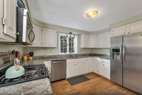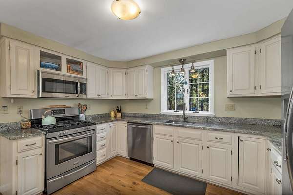 Welcome to 35 Westwood Drive, a well-maintained Garrison-style home located just moments from the Cotton Valley Trail, Wentworth Lake and Winnipesaukee and all that Wolfeboro has to offer. Pride of ownership shines throughout, with numerous updates completed over the years. Just a few of the many improvements include extensive tree removal, a newer FHA heating system, roof, and water heater, oversized 2 car garage, mudroom entryway, and dining room, as well as a beautifully renovated kitchen with hardwood floors added throughout the first floor. Both the first-floor bath and the primary suite bathroom have also been tastefully remodeled. As soon as you enter the home, you'll appreciate the inviting warmth of the wood stove, perfect for the winter months. This home also sits on a private, and spacious lot featuring a peaceful backyard and you'll enjoy the designated gathering area around the fire pit. This move-in ready home combines comfort, updates, and an ideal location in the Lakes Region. A wonderful opportunity to enjoy year-round or as a seasonal getaway. Open House Saturday 12/6/25 11am-1pm or schedule your showing today.