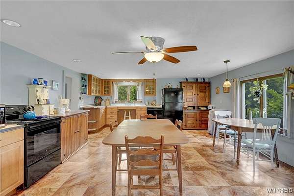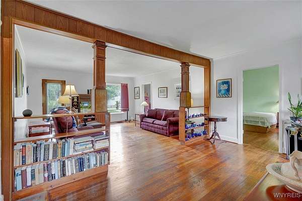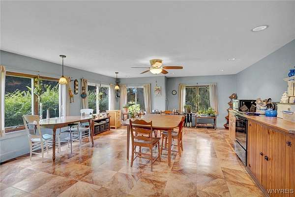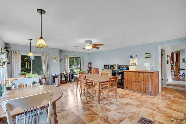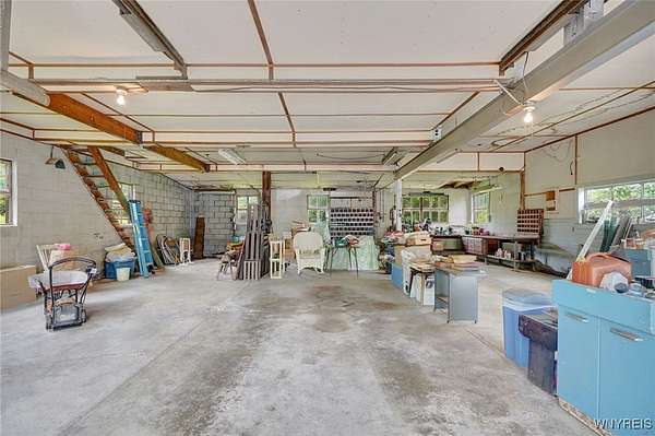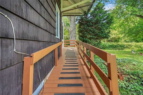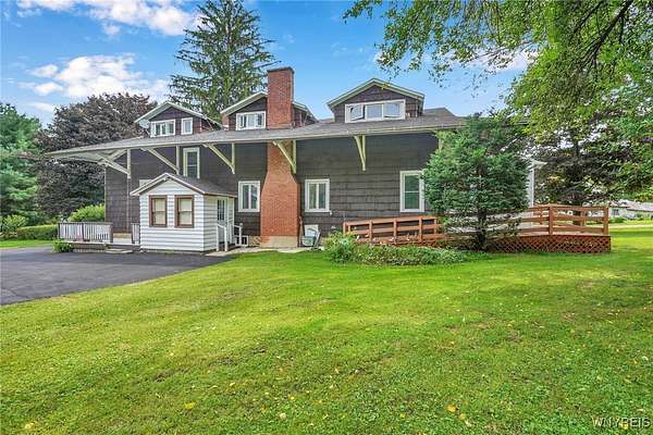Still known as The Buffalo and Susquehanna Freight House you can now own of piece of history in Belmont, NY, the county seat of Allegany County. Railway served as the Wellsville and Buffalo, NY, railroad in the early 1900's. Built pre World War 1 era, modernized to what it is today; roughly 2480 sq feet and 3 bay deep garage all on a sprawling private over 2 acre lot--lush mature trees and perennial gardens adorn the back and side yard. Wild life like it here. Expansive culverts/ditches and underground piping diverts all springs and water away from the property which in turn keeps the cellar completely dry all year around. Kitchen expansion was made to a grand size (20x27) and modernized to serve as the family gathering place. New cabinetry installed and original Hoosier cabinet and 2nd nice cabinet will be left for the new owner, fits just right here. All appliances convey. You will note the handicap accessibility features throughout the interior and exterior of the house. The large walk in tiled shower is sure to please family members who like or need more space. Two first floor bedrooms for those who need an easy, convenient sleeping location. Four bedrooms upstairs and 7 deep closets will surely be enough space for any growing family. Large upstairs bathroom is original with claw foot tub. Wood burning fireplace should be checked if Buyer wants to use it, owner does not use it. Enclosed side sitting porch will be used 3 seasons for relaxing and birdwatching. This is a well maintained, historical, unique home with many upgrades and a must see! County has the sq footage incorrect. See additional information attached to the listing.