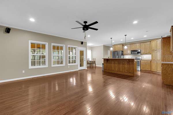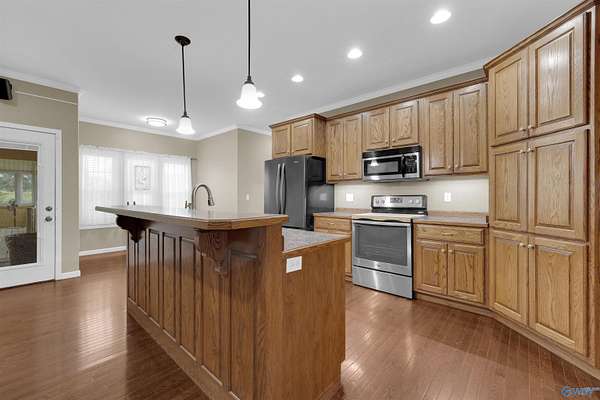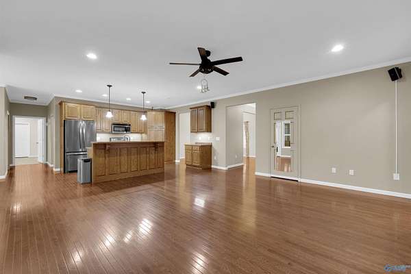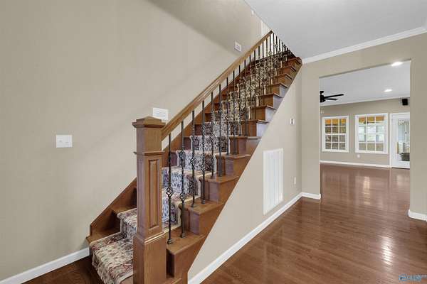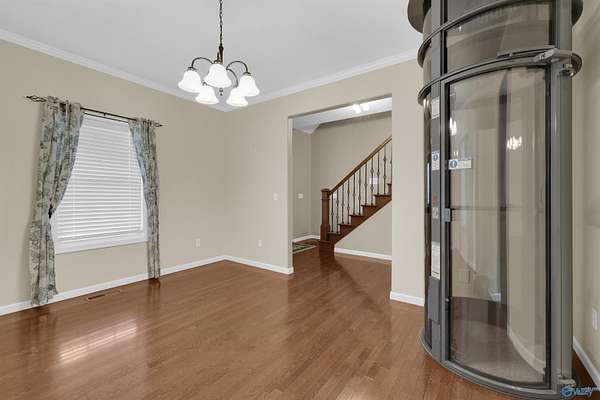RAINSVILLE-Main level boasting wood flooring, formal dining room, open living room to kitchen, primary suite w/ walk-in closet and ensuite bathroom, 2 spare bedrooms and bathroom. Kitchen offers island, pantry, and stainless appliances. 2nd floor offers bonus room, full bathroom, and additional 3 bedrooms. Worried about stairs? This home offers an elevator to make that easier! Outside you will find an oversized sunroom with free-standing fireplace, chainlink fencing, 2 car garage, storm shelter, additional carport, all on 1.65 acres. All of this on a corner lot with a well maintained home! This Home has SO much to offer, it is a much see to take it all in! Approx 3350sqft offered at $494,900