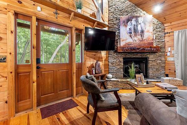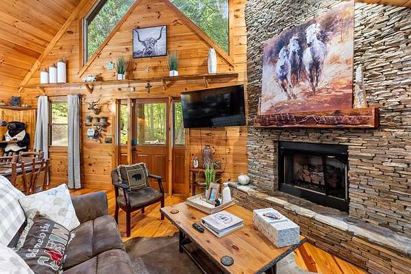 Welcome to 706 Magnolia Way . A cedar contemporary split level home in the wooded established neighborhood of Bramble Oak . The home is nestled in a wooded lot in a private cul-de-sac . There is a stream at the edge of property thru the woods. Enjoy the established trees and mature plants. We've cultivated the yard and half of the c Reduced $15,000! Motivated sellers may contribute toward a one year interest rate buy-down with an accepted offer. Seller's preferred lender required for incentive. A one-year AHS home warranty is also included for peace of mind. Discover your perfect Blue Ridge getaway in this beautifully maintained 3BR + bonus room (used as 4th BR) / 3BA log home, just 10 minutes from downtown. Set on 1.55 acres with 385 feet of rushing creek frontage (Mitchell Branch), this property combines natural beauty, privacy, and modern comfort--a rare find at this price. Enjoy mornings on the screened porch overlooking the creek and serene pond views, then unwind under the new outdoor pavilion by the stone fireplace. The 2-car detached garage and extensive outdoor spaces make this the ideal year-round mountain retreat plus....extra large 2-car garage with high pitched ceiling and lots of attic space 1/2 acre across the road that is part of the property with built in hiking steps into the woods Step inside to a warm, inviting interior featuring rich wood finishes, vaulted ceilings, and a cozy stone fireplace. The open-concept layout blends rustic charm with modern comfort. New furnishings throughout bring a fresh, stylish touch while honoring the cabin's authentic mountain character. Recent upgrades include a reinforced wall and deck with a hot tub, beautiful newly built natural wood pavilion with a lovely stone wood burning fireplace , new appliances and sink, and a whole-home water filtration system. Offered fully furnished with a strong rental history, this home is truly turnkey--ready for personal enjoyment or as an excellent investment opportunity.