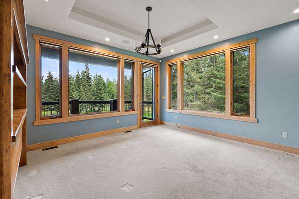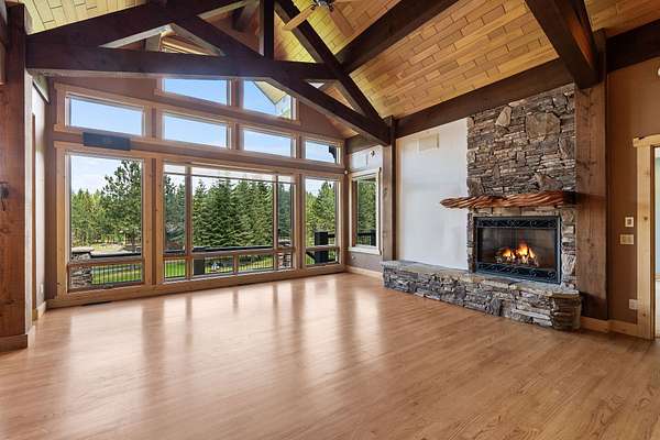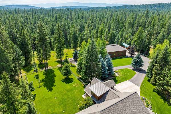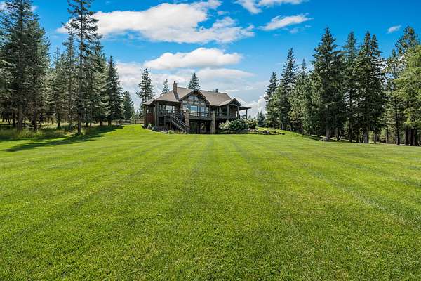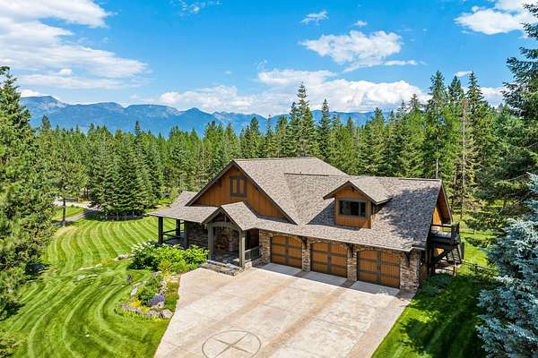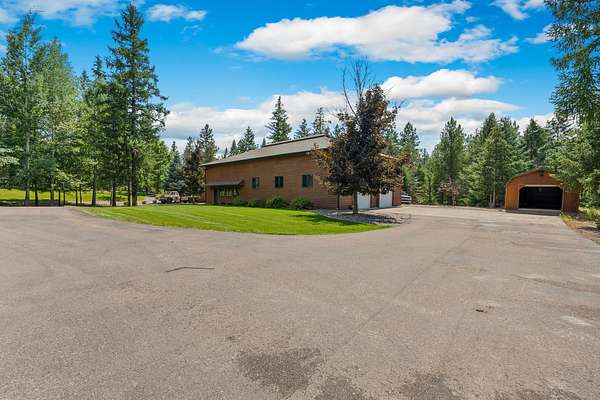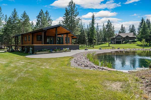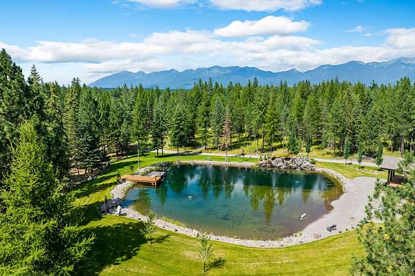 A rare opportunity to own nearly 56 private, wooded and parked out acres with views of the Swan Mountain Range just minutes from the artisan village of Bigfork and Flathead Lake! This extraordinary estate offers the perfect blend of refined elegance and rustic Montana living, with a custom-designed 4BD/5BA home showcasing high-end finishes throughout its generous 4,589 square feet with an ideal blend of main- and lower-level living. Enjoy the serenity of a large custom pond complete with a dock, beach area and waterfall. Guests will enjoy the upper-level suite with its own separate entrance, as well as an additional guest home overlooking the pond. Bring the fun outside with the expansive upper deck and lower patio! An impressive 3,124 SF shop offers endless possibilities, complete with RV parking and hookups, a dedicated office with a half bath, and abundant storage. Two additional storage sheds provide even more flexibility for recreational gear, tools, or hobbies. Entertain effortlessly in the spacious gourmet kitchen, where beautiful appliances, granite countertops, custom knotty alder cabinetry, and a large island come together in a space that flows seamlessly into the formal dining area and great room. A soaring T&G ceiling with dramatic wood beams, floor-to-ceiling windows, and a cozy rock fireplace complete this warm and inviting space. The main level primary suite has direct access to the deck and a luxurious ensuite bathroom with dual vanities, a deep jacuzzi tub, and a large custom tile shower with an artistic detailing. Its generous walk-in closet connects directly to the laundry room for convenience. The expansive lower-level walkout offers the perfect space for relaxed entertaining, featuring a beautifully crafted custom wet bar and a generous living area that seamlessly opens to the lower patio, ideal for indoor-outdoor gatherings. All bedrooms feature their own ensuite bathroom. Whether you're taking in the mountain views from the deck or heading to nearby Flathead Lake, Swan Lake, Glacier National Park, Jewel Basin Hiking Area, or Whitefish Mountain Resort, this legacy property offers unmatched access to both nature and convenience. See Feature Sheet in Docs.