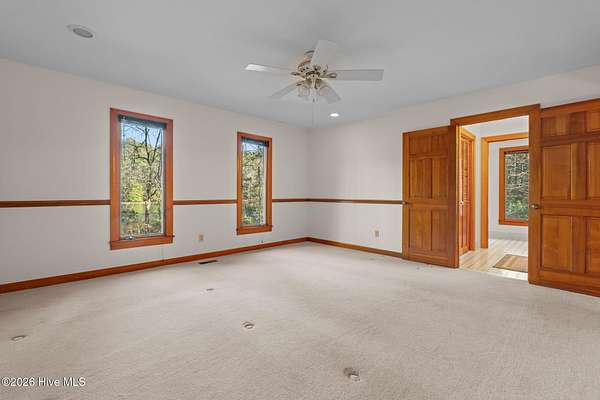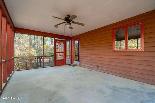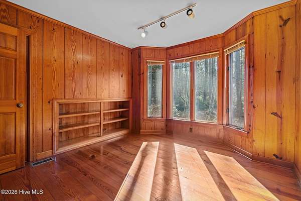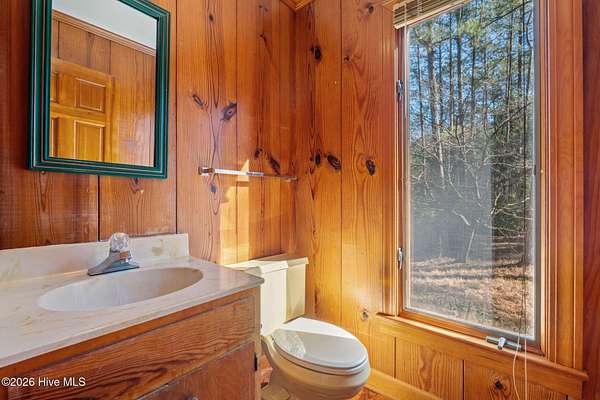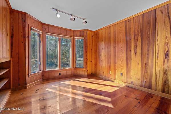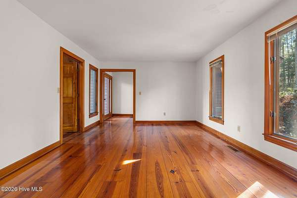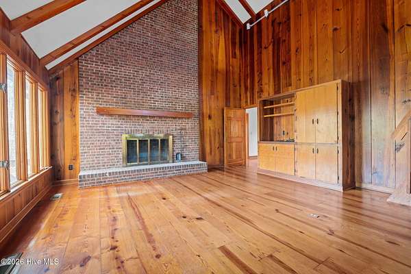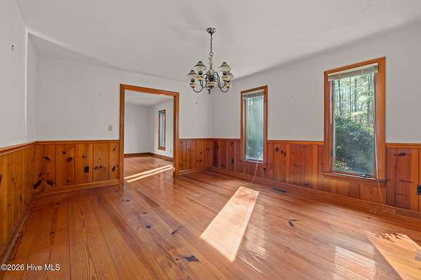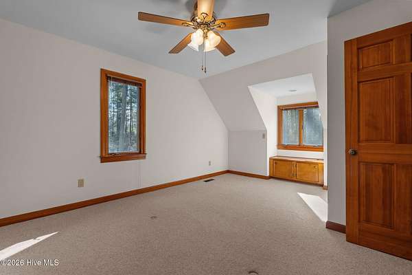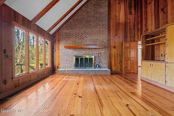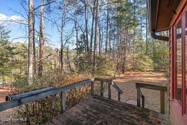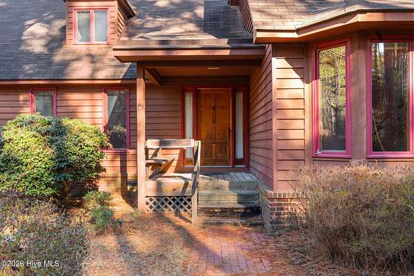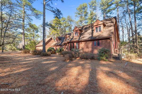 Lakefront seclusion. Five private acres. Eight minutes to Pinehurst. Tucked away at the end of Brinkley Road, this one-of-a-kind Carthage retreat delivers something increasingly rare: total privacy, timeless craftsmanship, and effortless access to the heart of Pinehurst. Set on five wooded acres and just 100 yards from the shoreline of an approximately seven-acre lake, this home offers a front-row seat to nature--without sacrificing convenience. Inside, the house immediately sets itself apart. Authentic 11 1/4-inch heart-pine floors and matching pine paneling run throughout, a level of material quality that is virtually impossible (and prohibitively expensive) to replicate today. Warm, wide planks underfoot, natural grain on the walls, and solid wood cabinetry create an atmosphere that is both refined and deeply comfortable--more bespoke lodge than standard residence. The home offers approximately 3,100+ square feet of heated living space with a highly livable layout, including four to five bedrooms, two full bathrooms, and a convenient powder room--making it exceptionally well suited for full-time living, guests, or a growing family. The main level features generous living and dining spaces, a family room with soaring ceilings, and a kitchen that embraces the home's natural materials while remaining highly functional. A main-level primary suite provides ease of living, while the upper level offers additional bedrooms, flex space, and a loft ideal for guests, a home office, or creative pursuits. Outdoor living is equally compelling. A screened porch and deck overlook the wooded landscape and lake beyond, making mornings peaceful and evenings unforgettable. Whether you're watching wildlife, enjoying a quiet cup of coffee, or entertaining friends, the setting feels miles away from everything--yet you're only eight minutes from the Village of Pinehurst, world-class golf, dining, and shopping. This property is not about trends. It's about permanence. It's about land,