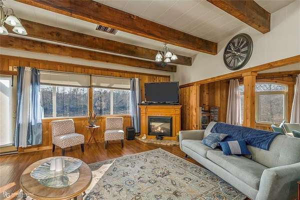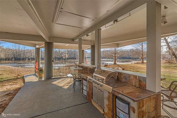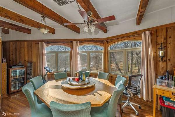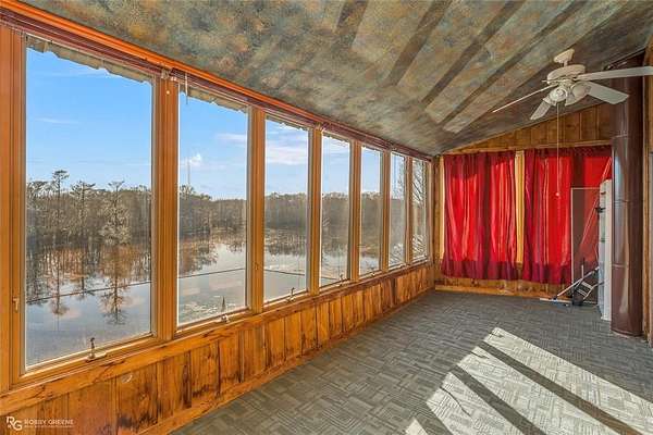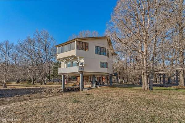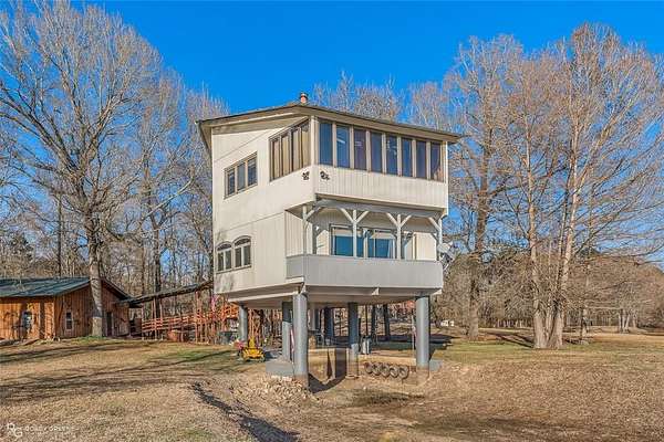 WOW! This lake home has character, charm and views. From the use of cedar, beams and hardwood floors throughout to the views of the lake from the bedrooms, living room and dining room this house is unique. The living room is cozy with a decorative fireplace and has access to a small balcony. The adjoining dining room not only has a lake view but a built-in table with a lazy Susan and can seat 8. The large master bedroom has a 14 ft. high beamed ceiling and a connected sunroom overlooking the lake. The guest bedrooms have lake views also. Downstairs, under the main house, is an outdoor kitchen and recreation area with a grill. Nearby is a boat slip for easy access to Lake Bistineau. Sitting on 1.81 acres there is also a 3 car attached garage and 2 storage buildings.