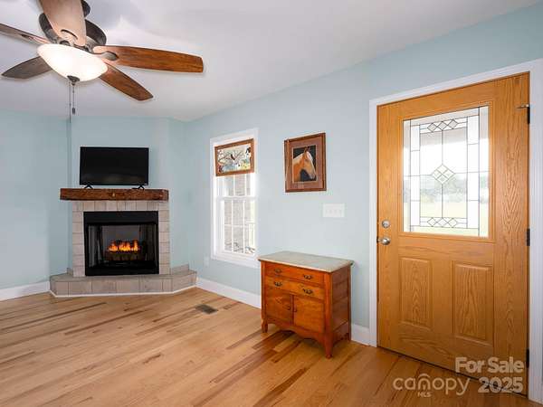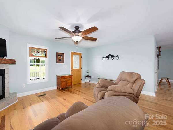 Escape to the countryside to this Charming Custom Brick Ranch with a full basement situated on a private 7 acres. Open floor plan w/ hardwood floors throughout; Kitchen offers grand eat-in island, granite counters, black ss appl, soft closed cabitnets; Gas log fp in the great room; Primary has double sinks and walk-in tile shower; secondary bedrooms have walk-in closets; the walk out basement is heated and cooled and partially finished and has full bath...perfect area for recreation and an additional family room. Oversized 2 car garage and a 1 oversized 1 car garage/workshop in the basement area. 1 stall barn w/feed room...Perfect for a mini farm. Fruit trees and creek at the back. Country Living at its best! $4500 lender credit in closing costs available!