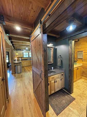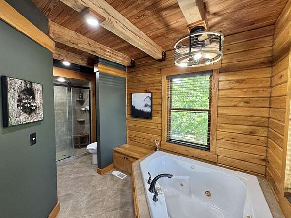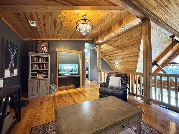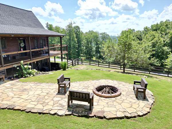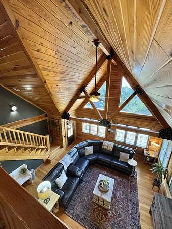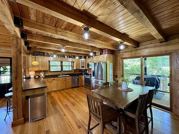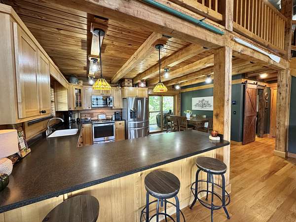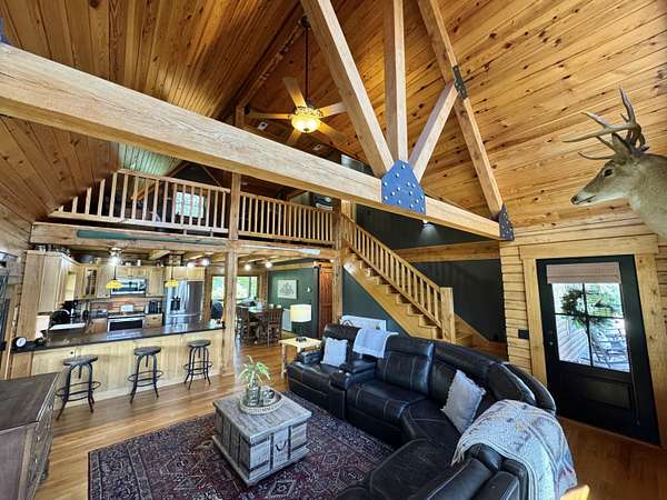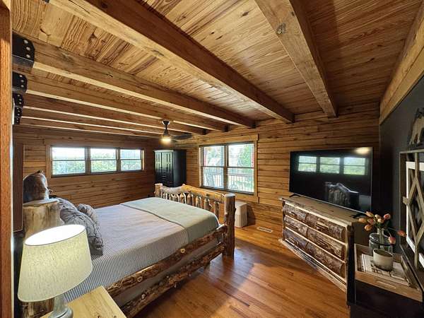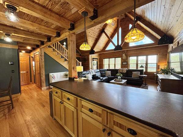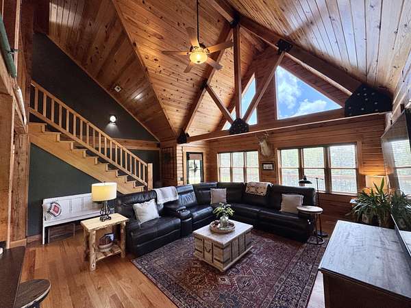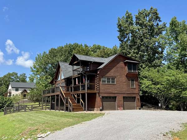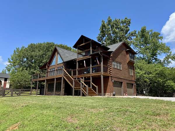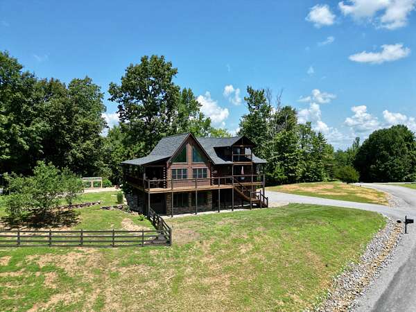 Overlooking Dale Hollow Lake is this breathtaking oak lodge by Gastineau Log Homes sitting on over 4 acres! As of late October 2025, the home has just been professionally cleaned, stained, and sealed for years of maintenance free enjoyment! Features an open concept living/kitchen/dining area with vaulted ceilings. 4 Bedrooms (easily 5 w/ loft area) and 3.5 baths make this ideal for hosting friends and family! All new stainless-steel appliances, new roof, finished basement, and oversized 2-car garage. All beds pictured are kings! The laundry is just off of the master suite which has a jetted tub, walk-in shower, and large walk-in closet. Ample space to entertain with the wrap around porch overlooking the lake, the fully fenced side yard with flagstone patio and firepit, as well as the firepit and sitting area in the woods below the house! Wisdom Dock Marina is only about 5 minutes away, and there is a community walking trail just below the home that goes down to the water's edge. The 4+ acres are made up of 3 surveyed tracts which present an awesome opportunity for family or friends to build their own place on either side of the lodge! This is a ''must see'' property with endless potential. Call today for a private tour! *Ask for list of new home updates