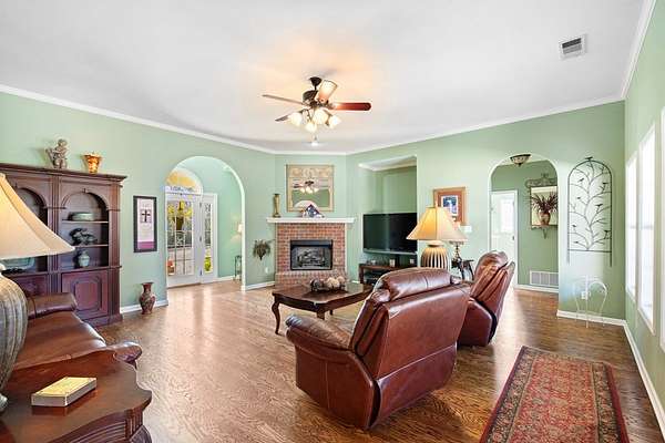 - Blinds, Ceiling Fan(s), Fireplace-Gas, Granite Countertops, Walk-In Closet(s), Workshop