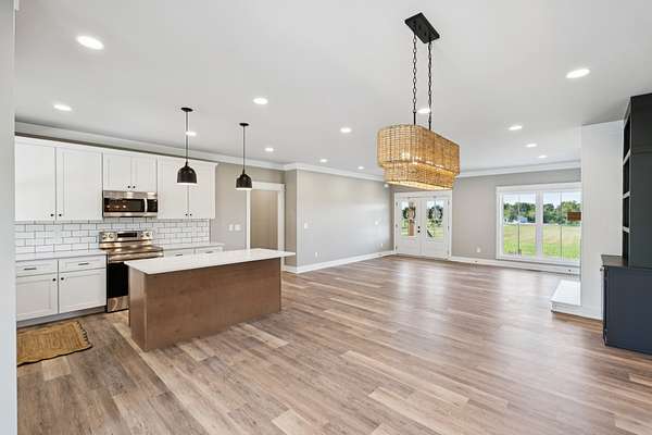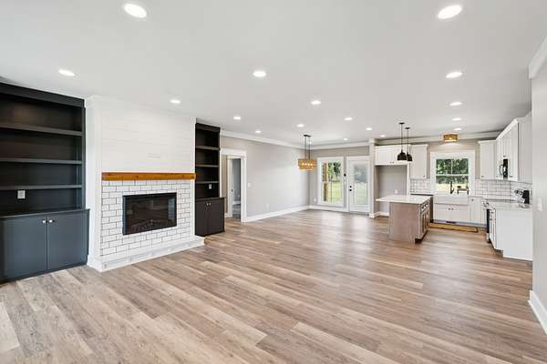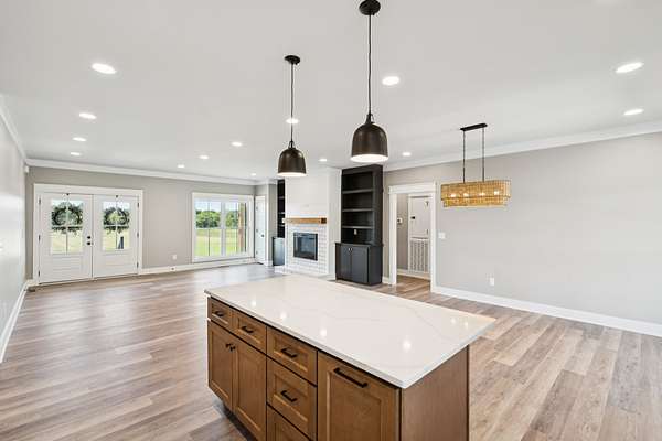 - Bookcases, Built-In Features, Kitchen Island, Open Floorplan, Walk-In Closet(s)