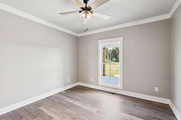 Look no further! This stunning custom home on 3.4 acres is filled with upgrades. The kitchen features custom cabinets, a farmhouse sink, and a large island with quartz countertops. The open floor plan includes LVP flooring throughout and a beautiful fireplace, while the primary bathroom offers a freestanding tub and custom tile shower. Additional highlights include built-in closets, a drop zone with bench, a spacious laundry room with cabinets and sink, and an encapsulated crawl space with a dehumidifier. The front and back porches are perfect for entertaining, Southern-living style. Don't miss this opportunity to call this home yours!