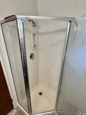 - Breakfast Bar, Fiberglass Stall Shower, Laminate Counters, Linen Closet, Pantry, Primary Downstairs, Shower/Tub Combo, Tile Shower, Walk-In Closet(s)