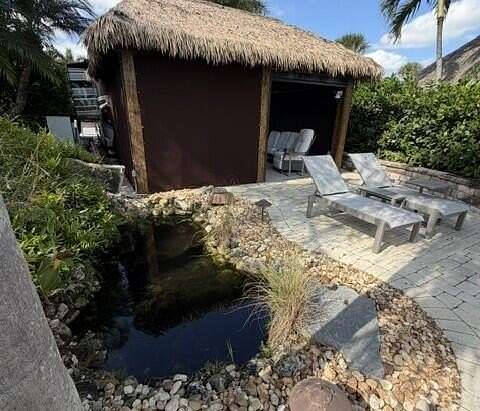 The right stuff! Large well appointed lake/pond front lot with waterfall views! 2 tikis with synthetic, low maintenance palm frond roofs with automatic shades with internet operation. Tile floors enhance the beauty of the tikis! Gorgeous high end well appointed kitchen, stainless appliances, weather resistant cabinets and granite counters. Custom canvas covers for all for off season protection! Additional paver seating entertainment spaces. This is a smart priced, must see lot. Furniture and TV are excluded. Motorcoach Resort St Lucie West is a gated Class A Motorcoach resort with amenities galore including an 18 hole executive golf course, 4 pools, hot tub, pickleball, tennis, and so much more! Dog friendly, second to none activities and on site management. More photos to come.