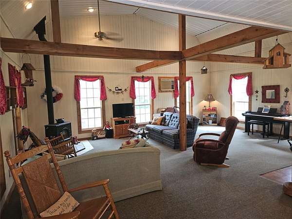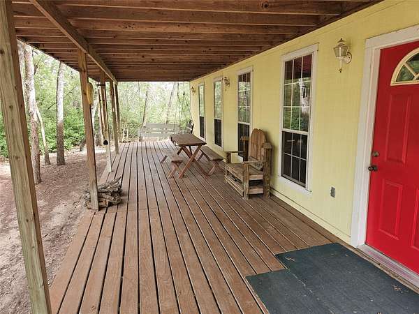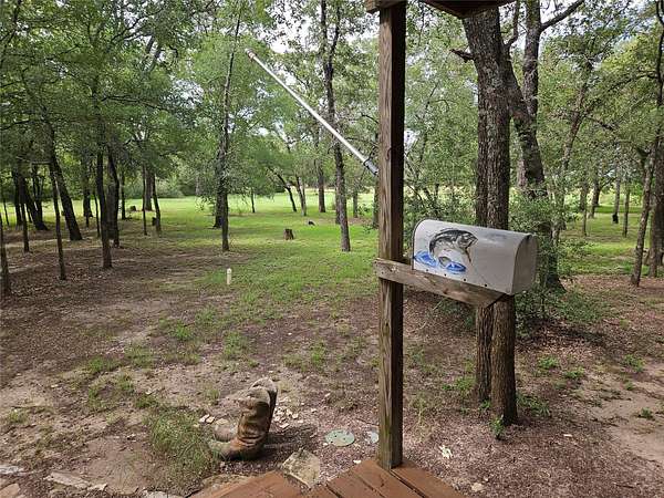 Great place to escape to the country! Unique cabin built in the woods with a beatiful tree covered lot! It has a large pond that is connected to a water well. Manville water and electricity to the cabin. Lots and lots of trees with a couple areas that have been cleared. Great views and lots of wildlife! Whitetail deer, exotic deer, dove, hogs and lots more!