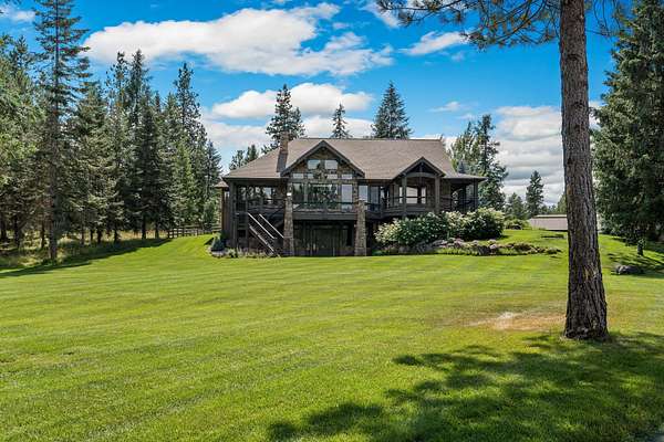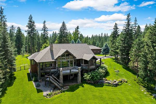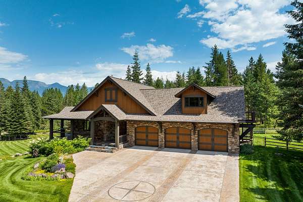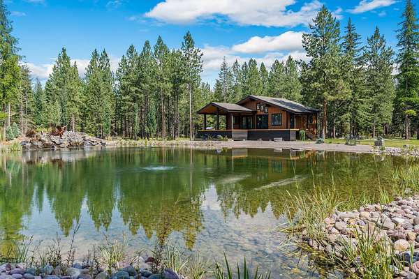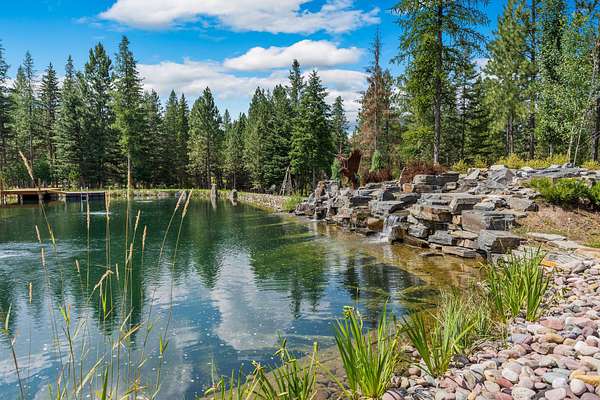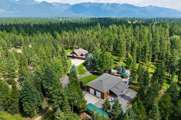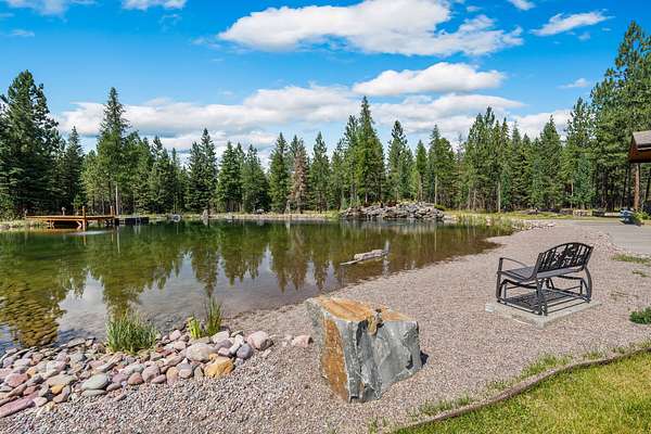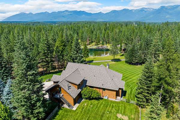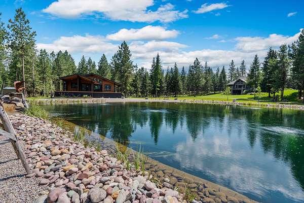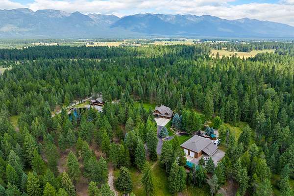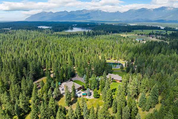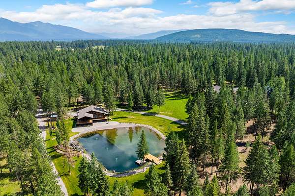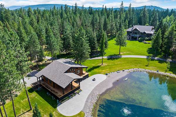 A rare opportunity to own nearly 35.91 private, wooded & parked out acres w/ views of the Swan Mountain Range minutes from the artisan village of Bigfork & Flathead Lake! This extraordinary estate offers the perfect blend of refined elegance and rustic Montana living, with a custom-designed 4BD/5BA home showcasing high-end finishes throughout its generous 4,589 square feet with an ideal blend of main- and lower-level living. Enjoy the serenity of a large custom pond complete with a dock, beach area and waterfall. Guests will enjoy the upper-level suite w/ a separate entrance, and an additional guest home overlooking the pond. Bring the fun outside w/ the expansive upper deck & lower patio! An impressive 3,124 SF shop offers endless possibilities, complete w/ RV parking & hookups, a dedicated office with 1/2 bath, & abundant storage. 2 additional storage sheds provide even more flexibility for recreational gear, tools, or hobbies. 20 acre adjacent parcel also available for purchase. Entertain effortlessly in the spacious gourmet kitchen, where beautiful appliances, granite countertops, custom knotty alder cabinetry, and a large island come together in a space that flows seamlessly into the formal dining area and great room. A soaring T&G ceiling with dramatic wood beams, floor-to-ceiling windows, and a cozy rock fireplace complete this warm and inviting space. The main level primary suite has direct access to the deck and a luxurious ensuite bathroom with dual vanities, a deep jacuzzi tub, and a large custom tile shower with an artistic detailing. Its generous walk-in closet connects directly to the laundry room for convenience. The expansive lower-level walkout offers the perfect space for relaxed entertaining, featuring a beautifully crafted custom wet bar and a generous living area that seamlessly opens to the lower patio, ideal for indoor-outdoor gatherings. All bedrooms feature their own ensuite bathroom. Whether you're taking in the mountain views from the deck or heading to nearby Flathead Lake, Swan Lake, Glacier National Park, Jewel Basin Hiking Area, or Whitefish Mountain Resort, this legacy property offers unmatched access to both nature and convenience. See Feature Sheet in Docs.