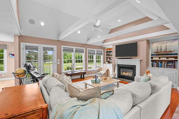 Welcome to a quintessential Cape Cod estate at 350 Plum Street, West Barnstable, where antique charm meets modern sophistication. This spectacular waterfront property spans over 4 acres, offering panoramic vistas & includes a buildable additional lot, enhancing its allure & potential. Inside, discover 4 exquisitely designed bedrooms, including 2 primary suites with spacious layouts, opulent en-suites, & expansive walk-in closets. The estate features a historic barn & a newly renovated antique one-bedroom cottage, ideal for guests or rental income. Living spaces offer relaxation & entertainment, highlighted by 2 fireplaces--1 gas & 1 wood-burning--providing warmth & charm. A partially finished walk-out basement offers customization potential. The sprawling backyard is perfect for celebrations, complemented by a private sandy beach for tranquil moments. Additional amenities include a generator & an oversized 2-car garage for convenience & security. Experience a luxurious Cape Cod lifestyle, merging historical elegance with modern comforts. Don't miss the chance to own a piece of Cape Cod's storied charm, complete with a buildable lot & a serene private beach.