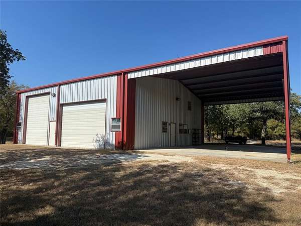BACK ON THE MARKET, BUYER COULD NOT SELL THEIR PROPERTY! Spacious Home with RV Barn and Guest Apartment - A True Home Away From Home! This versatile property features a one-bedroom home with a large open living area. Designed with accessibility in mind, the home has tile floors, grab bars, and a handicap-accessible shower. Parking is a breeze with two carports: one large enough for four cars and another, attached to the shop, that accommodates two RVs with hookups. The property includes a massive 50 x 80 metal building, featuring a 50 x 50 insulated workshop with roll-up insulated doors (2 x 14 by 16, and one electric 12 by 18) and an attached guest apartment. This space is perfect for hobbies, storage, or hosting guests. Nestled on a picturesque 5-acre lot filled with live oaks, the property backs up to CORP land at Lake Whitney, providing a hike able access to nature and water. Enjoy the wildlife, including deer, turkey, and more, right in your backyard! A unique and serene retreat, ideal for country living with all the amenities you need.