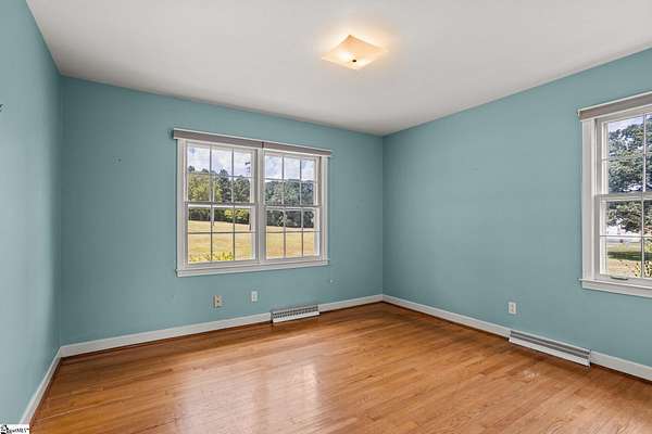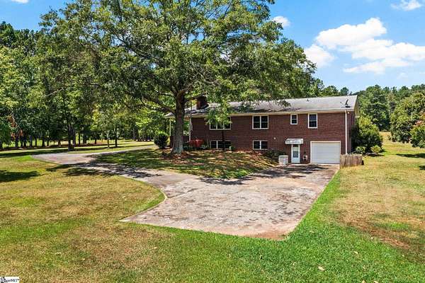 Presented by Sandra Stroud, Realtor. Call for your showing 864-414-1461. Picture a classic 1960s brick ranch home nestled on a sprawling, open, and mostly flat landscape. This single-story residence and basement offers a welcoming and comfortable home. The home's exterior features the appeal of brick, a timeless choice known for its durability and charm. Mature trees dot the property, providing ample shade throughout the seasons. The flat terrain offers boundless possibilities for landscaping, from vibrant flowerbeds to lush green expanses, and the overall setting evokes a feeling of peaceful, spacious living. This home sits on app. 4.14 acres with 3 bedrooms, 2 baths. The basement has a finished room with a wood burning stove insert in the fireplace. The other part of the basement features a huge storage area perfect for storage and a one car garage. There is also a detached 2 car garage/workshop. There is handicapped access to the home. Deed restrictions will be put into place before closing. Home sold "as is"