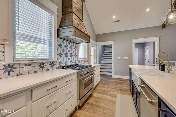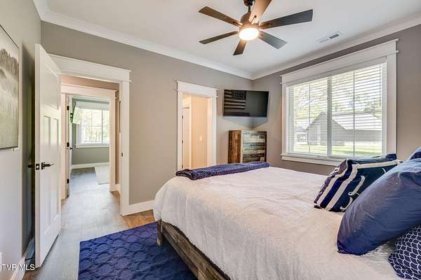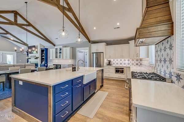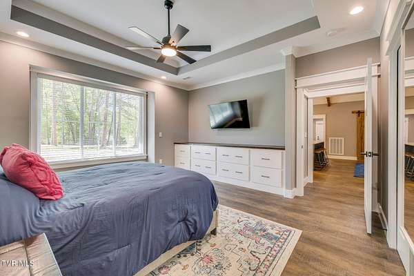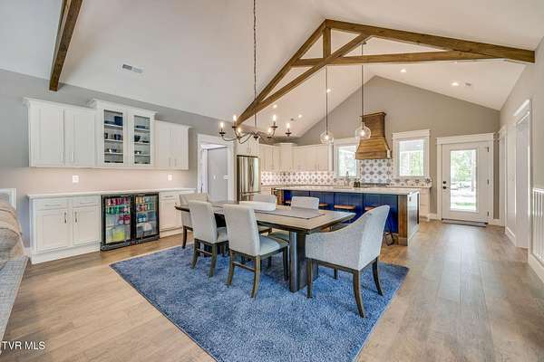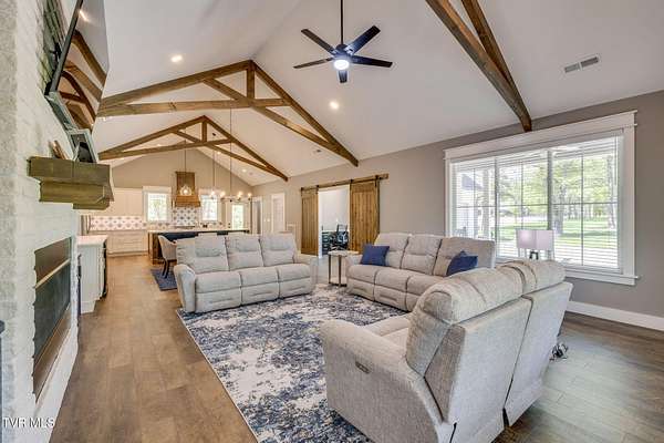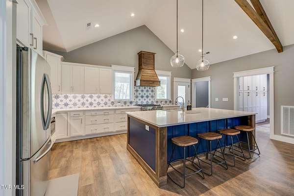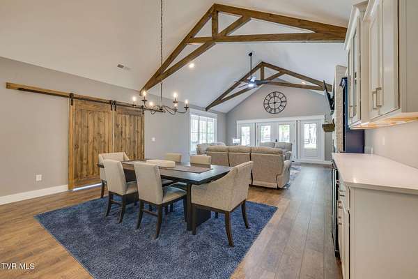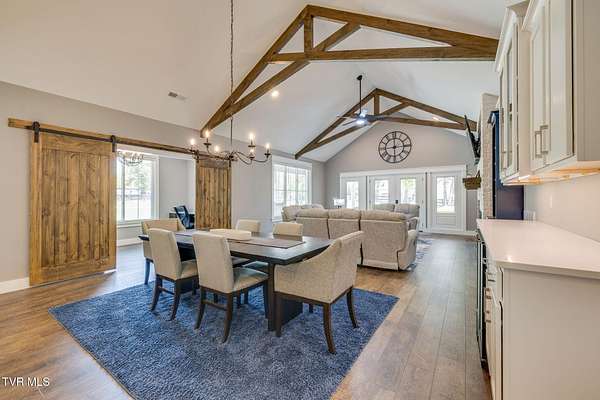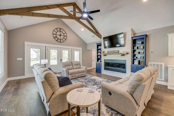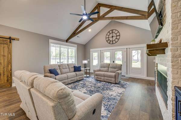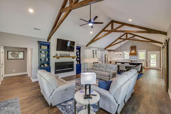 Welcome to this beautiful lake home located in the highly sought-after gated community of Sunset Harbor on scenic Douglas Lake. Situated on approximately 2.23 acres, this impressive 3-bedroom, 3.5-bath home offers around 3,146 finished square feet of thoughtfully designed living space. A spacious front porch welcomes you into the gorgeous open living room, featuring exposed wooden beams, a 60'' gas fireplace with custom built-ins on each side, and an abundance of natural light. The open-concept layout flows seamlessly into the dining area, complete with built-in cabinets and a 48'' under-counter beverage refrigerator--perfect for entertaining. The kitchen is truly a chef's dream, boasting a large eat-at island, extensive cabinets and quartz counter tops, zoned under-cabinet LED lighting, and stainless steel appliances. Highlights include a dual fuel range with a beautiful wooden hood, dishwasher, and a convenient drawer-style microwave. On the main level, you'll also find a unique his-and-her office space accented by beautiful barn doors. The spacious primary suite features luxury vinyl plank flooring, a tray ceiling, large windows, and custom built-ins. The large walk in closet has custom shelving and a vanity area. The luxurious en-suite bath includes double sinks, a soaking tub, and a custom tile shower. Also on the main level are two other spacious bedrooms that share a jack and jill bath and both have ample closet space. There is also a half bath near the living room for added convenience. A large bonus room--currently used as a fourth bedroom--offers flexibility as a playroom, office, or guest space and includes its own mini-split system. The main-level laundry room provides ample storage, and the home also includes an attached two-car garage. Step outside to enjoy the expansive property, which leads to your private dock on Douglas Lake. The lot offers plenty of space for adding an in-ground pool or detached garage. Additional features include: - Stamped concrete driveway - Dual fuel heat pump with WiFi compatibility - Gas tankless water heater - High-speed fiber internet - Pre-wired CAT5 in bedrooms and living room - Andersen sliding windows - Side-mounted, WiFi-enabled garage door openers - Natural gas and city water availability - Custom closets and abundant storage throughout - Would make a great Airbnb. This home is filled with exceptional details and upgrades--truly a must-see to fully appreciate! The Sunset Harbor Community offers boat slips and a boat ramp accessing the breathtaking Douglas Lake. There is a private community area with a wood framed pavilion with picnic tables, lounge chairs, fire pits and grills. The Sunset Harbor community is centrally located just 5 miles from downtown Historic Dandridge for shopping and dining. Douglas Lake offers amazing fishing, boating, kayaking, jet skiing, and paddle boarding! Located only 30-45 minutes from Sevierville, Pigeon Forge, Knoxville, Morristown and Newport for more shopping and dining options. You are also less than an hour from The Great Smoky Mountains National Park.