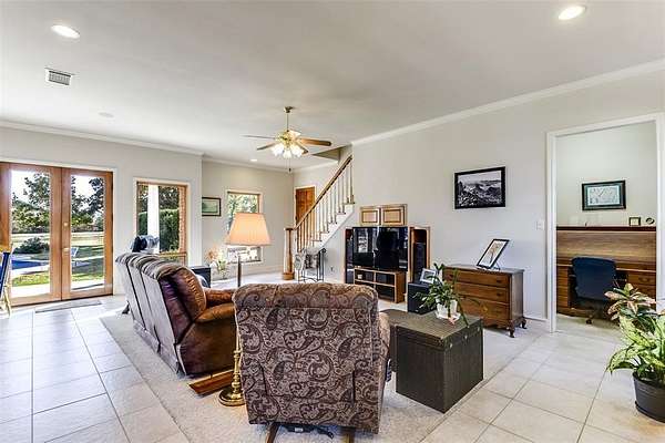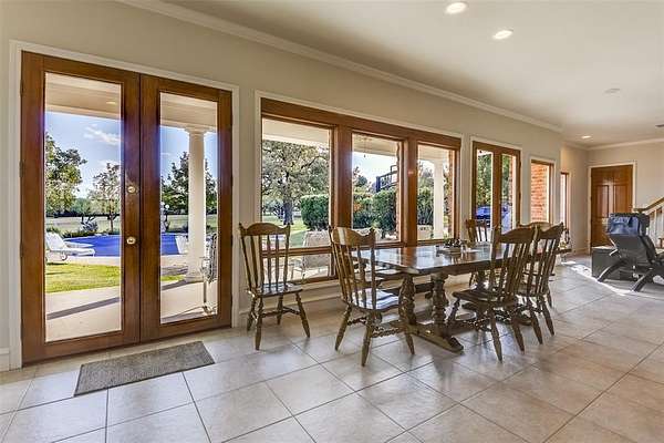 CUSTOM DESIGNED ONE OWNER HOME! In 2025, roof and gutters (with partial gutter guards) were replaced, exterior paint updated, pool replastered, and retiled. In 2025, the seller also replaced the security gate control box, board, and remote controls. Discover a truly unmatched blend of country serenity and city convenience on this 6.48-acre Mansfield retreat. Tucked among mature trees and open sky, this 3,575 sq ft estate offers a sense of space and privacy that's hard to find, and even harder to leave. Inside, the two-story layout is both inviting and functional, with generous rooms crafted for easy everyday living and effortless entertaining. Work comfortably from the dedicated study with fiber optic connections, then unwind upstairs in the spacious game room, perfect for movie nights, kids' hangouts, or weekend guests. The heart of the home is the warm, fireside living room, seamlessly connected to a kitchen designed with hosting in mind, complete with a pantry and smooth flow for cooking, gathering, and celebrating. Walls of windows and French doors draw you outside to an expansive deck overlooking the treed acreage and sparkling pool with a 10' deep end, creating a resort-like backdrop for summer cookouts, peaceful morning coffee, or evenings spent under Texas sunsets. The land itself offers endless potential, room for hobbies, gardens, a workshop, or simply enjoying the wide-open quiet that surrounds you. A property of this scale and character rarely becomes available so close to Mansfield conveniences. Come experience this one-of-a-kind private escape and see why it feels like home the moment you arrive.