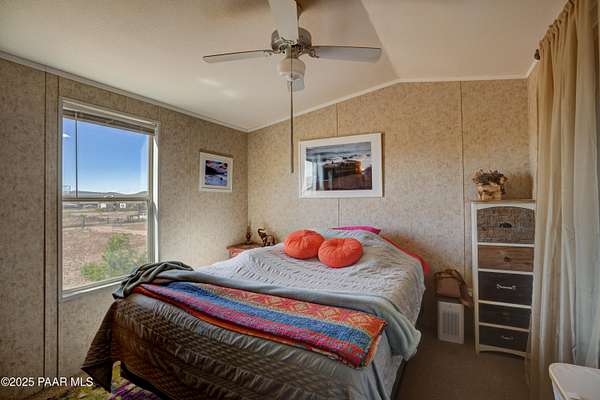 Welcome to 350 W Ranch House Rd -- a fully fenced 2-acre horse property offering country living with convenience. This 3 bed, 2 bath, 858 sq ft manufactured home includes brand NEW ROOF, RV hookups, a private well, conventional septic, and a range of appliances (refrigerator, electric range, microwave, dishwasher, washer/dryer). A 12x32 detached shed serves as an office or hobby room, complete with electrical and dual A/C window units. Fruit trees. Relax under the shaded backyard porch or enjoy wide-open views. Just off the pavement, this property is ideal for animals, a future shop, or peaceful rural life. Property next door is also available MLS 1076779